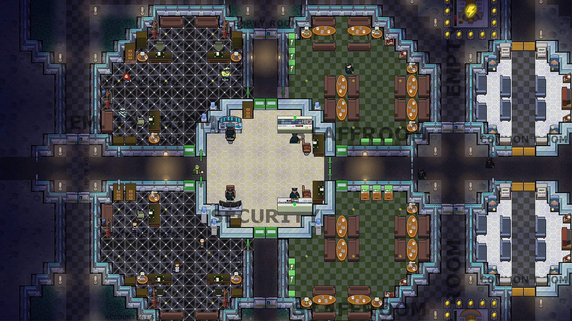 Say goodbye to concrete walls and welcome Glass. With Glass walls, you can keep an eye on your inmates at all times, and if that is not enough they can also wear a Tracking Belt. Follow their locations using the tracking menu, monitors, and routers. If you deem it necessary, there is also an Electrified Fence at your disposal. Lastly, we have reworked the design of inmates' and guards’ uniforms, for a more futuristic look. And don’t forget Subwoofer and Byte, the two new robot guard dogs.