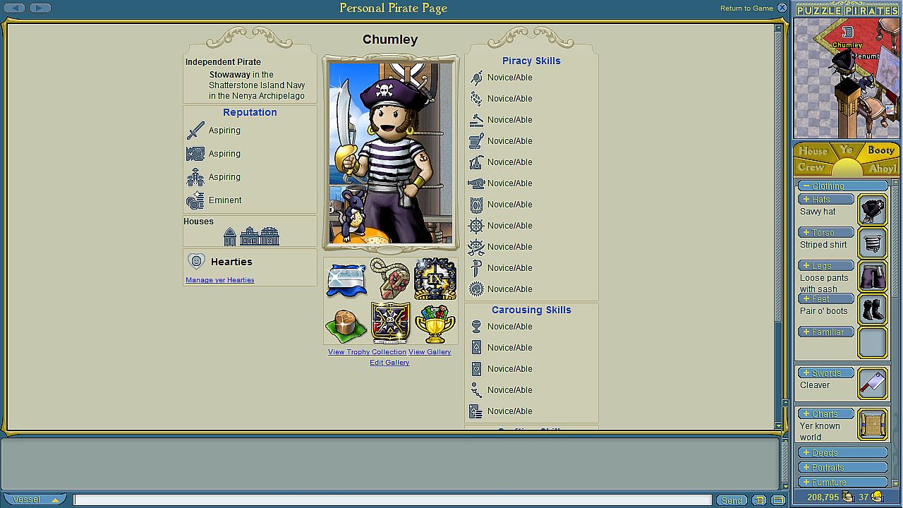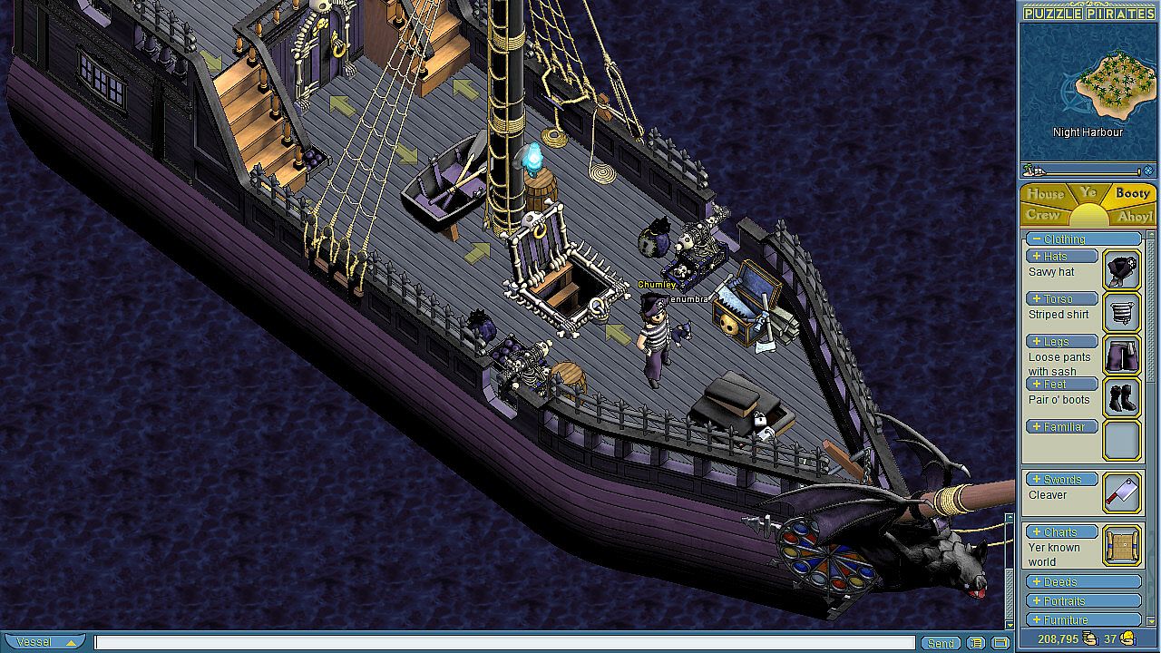 Items can only be accepted by one Pirate on the account. Savvy Crossbones Hats and rats bind on acceptance. Items that bind or are permanent will bind to the Pirate that accepts the items.
