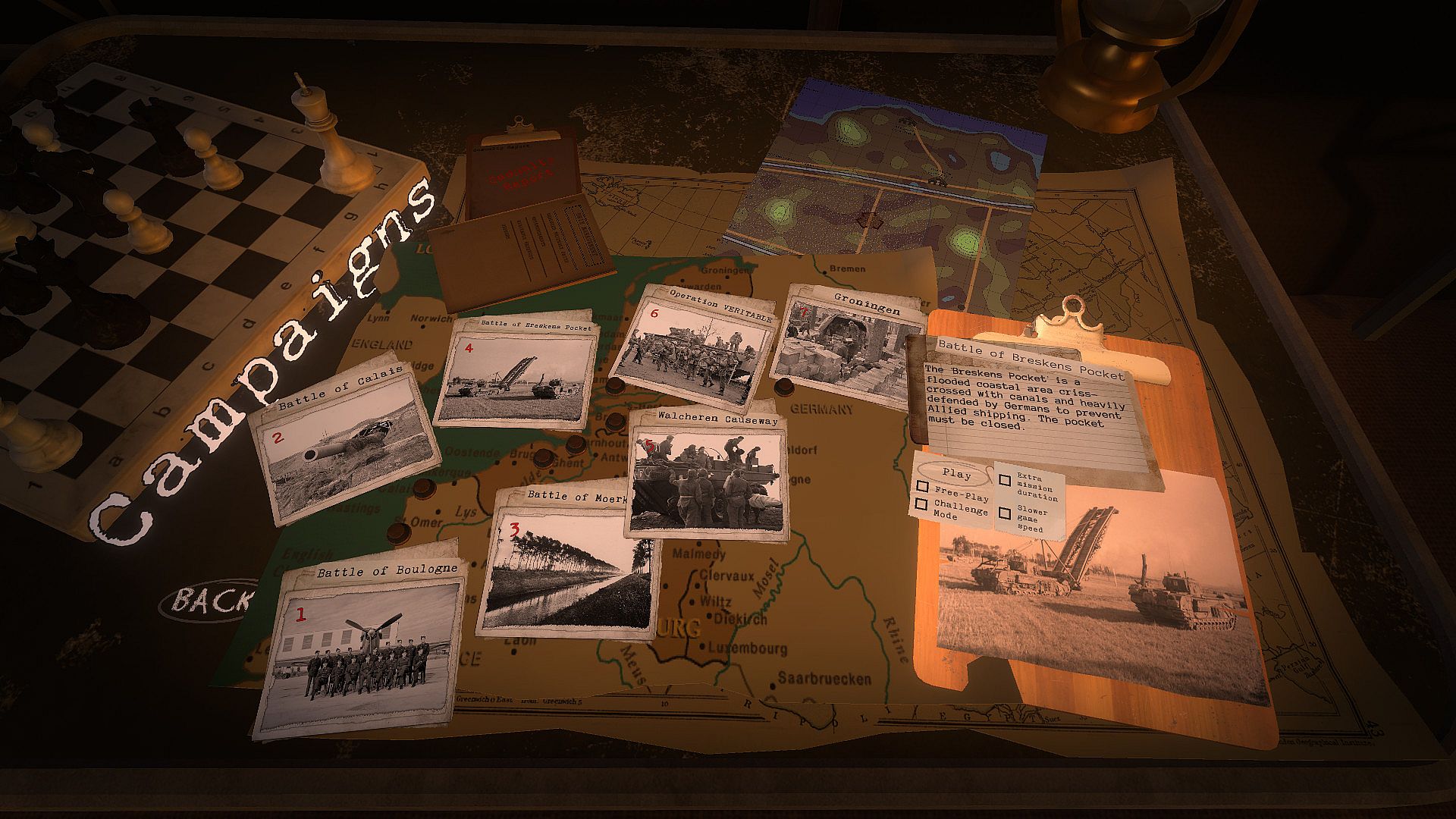 First capture the channel ports of Boulogne and Calais. Then head into the flooded polder country of Belgium and the Netherlands in the bloody and bitter Scheldt river campaign. Construct bailey bridges to cross canals, fight across swamps, fight for every inch of damp ground and earn the nickname 'Water Rats'. Take part in Operation Veritable to push into Germany, and lastly provide relief to 4.5 million starving Dutch civilians.