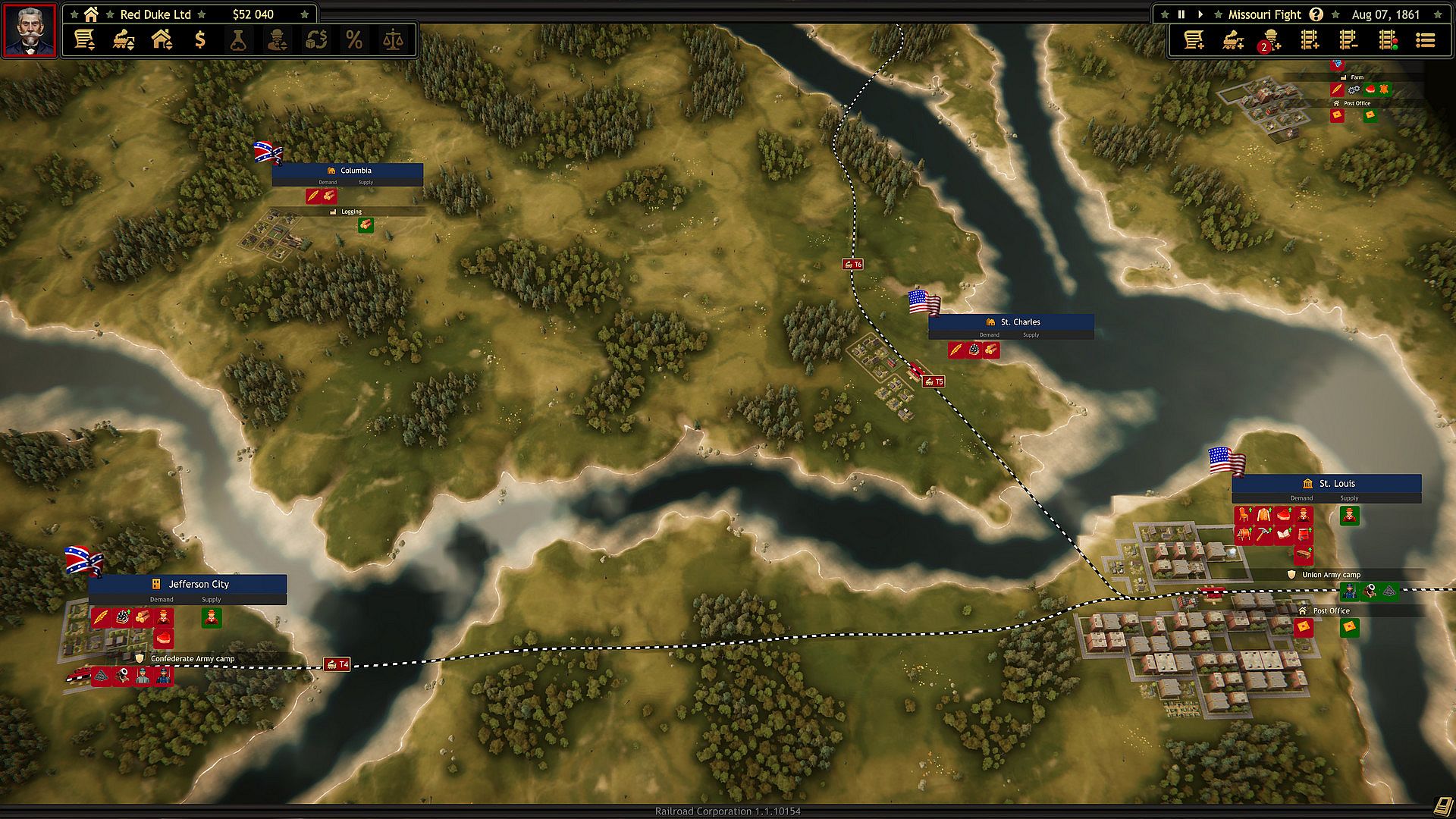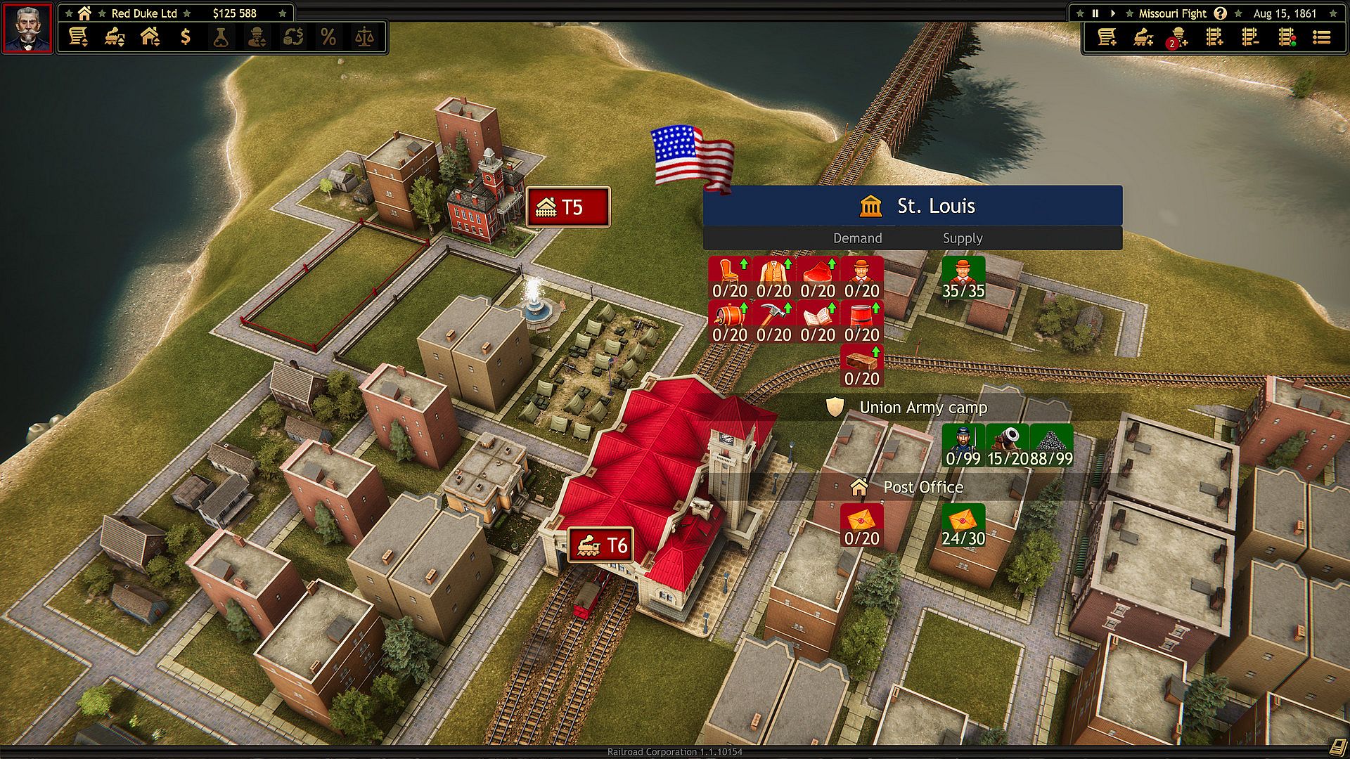 Railroad Corporation: Civil War introduces a brand new campaign of five missions that take place during the American Civil War in the 1860’s. Test your reliability as a partner for the Union or Confederate armies. Your objectives, at first, will be focused on producing and supplying war goods and delivering them to appointed locations. But soon, as you complete tasks and increase your reputation, your organization will become responsible for sending troops to the front line and ensuring that soldiers pack enough gear and ammunition for their cause. Grow your organization amidst the chaos and be prepared to make enemies, as no one can remain neutral for ever.