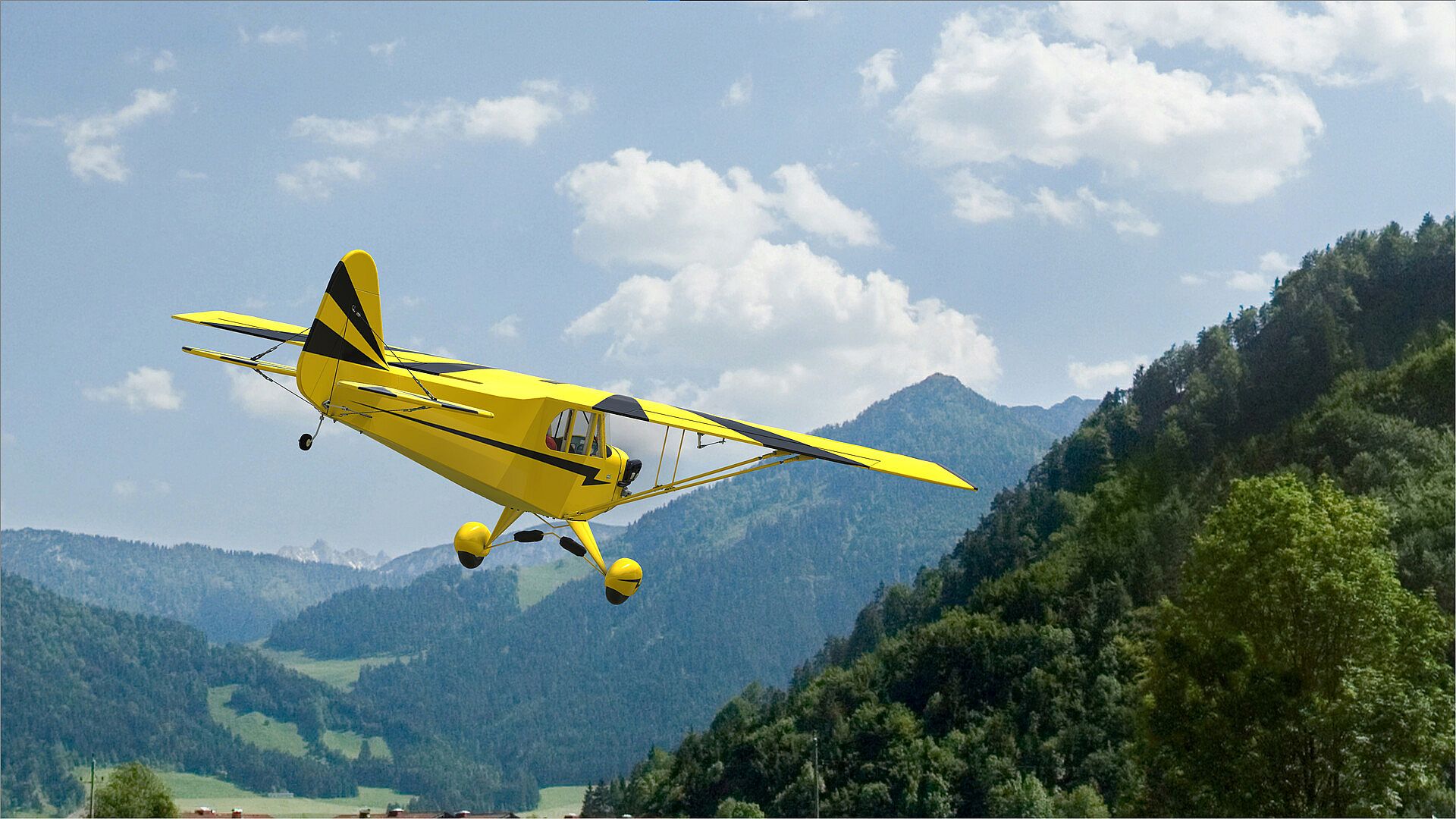 Fly the Hangar 9 J-3 Cub 10cc with clipped wings in RealFlight Evolution, a giant-scale replica spanning 67.5 inches. This simulation captures the classic aviation icon's look and flight feel through modern touches like a two-piece wing and fuselage slots for easy storage and transport. The ARF setup comes mostly assembled, ready for .62 4-stroke glow engines, 11cc 4-stroke gas options, or matching electric systems plus your choice of electronics. This DLC adds gas and electric variants, including float-equipped models for water operations. Pilots fly in indie simulation style, blending precise RC control with racing agility on PC. Aviation enthusiasts who value authentic replicas and versatile power setups get the most from these hands-on flight sessions.