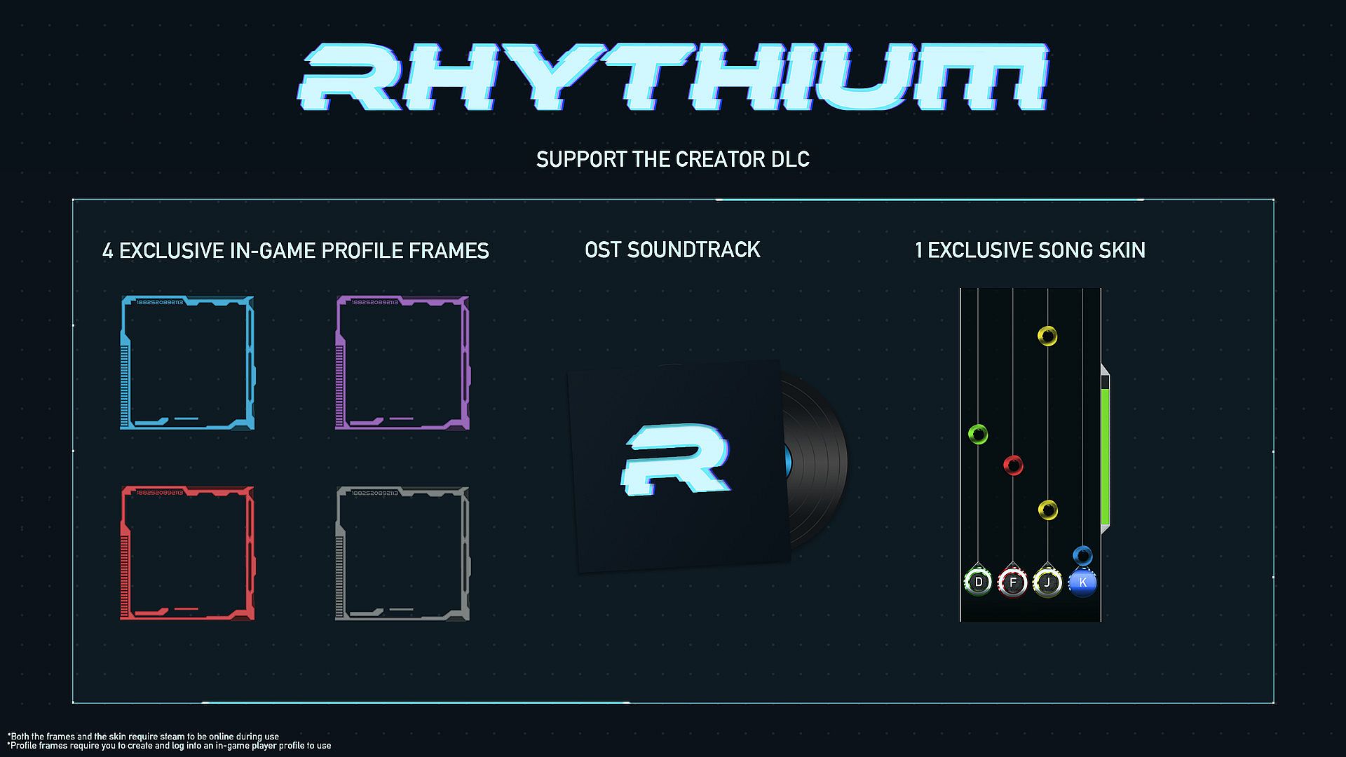 Before you start looking for a cheap Rhythium - Support the creator pack - DLC key, check the essentials. Developed by Wuko Games. Published by Wuko Games. PC released date: 28 Feb 2022. Genres: Indie, Casual. Categories: Family Sharing, Single-player, Downloadable Content, Steam Achievements.