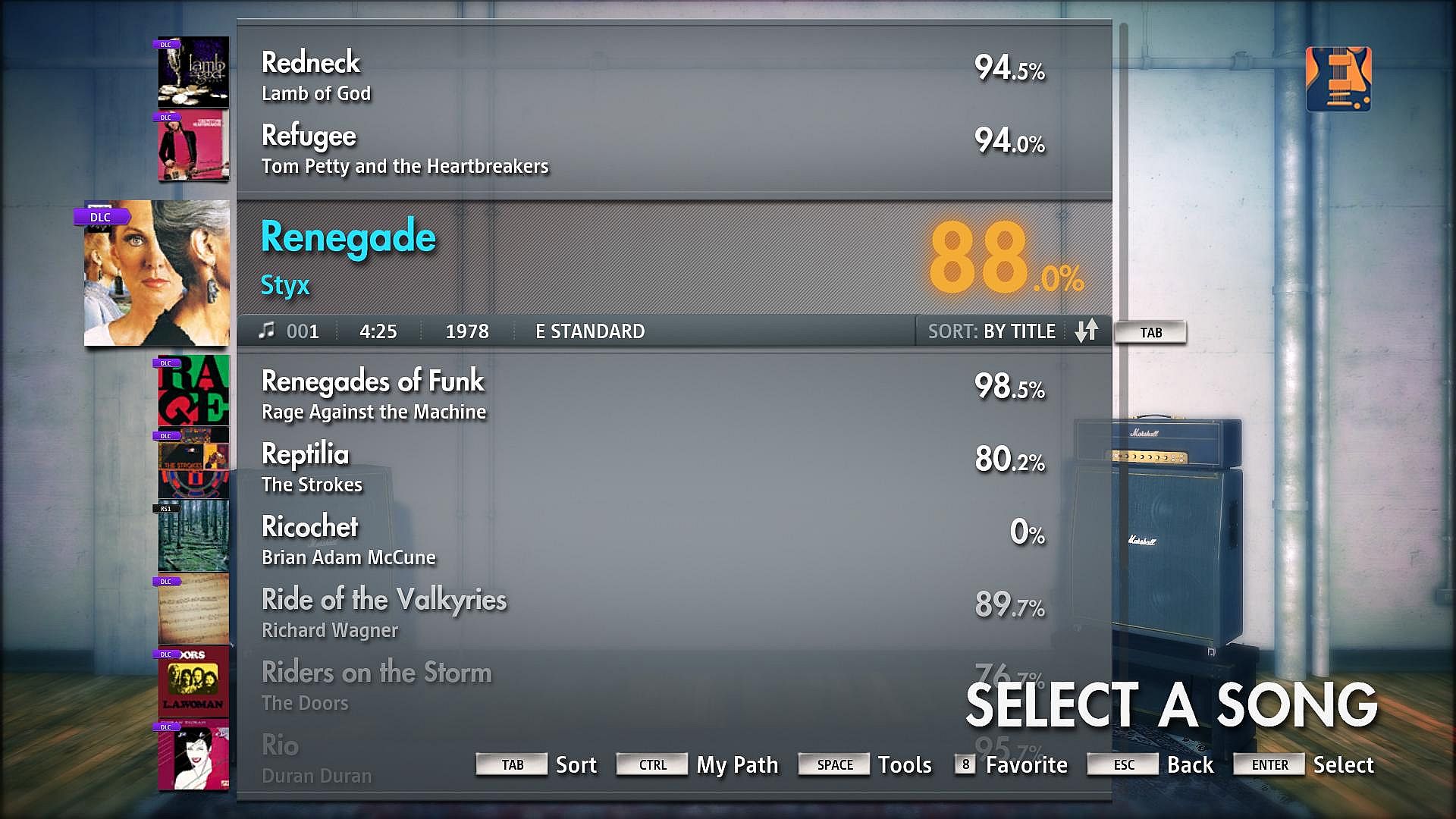 Play "Renegade" by Styx on any electric guitar or bass. This song includes a new Authentic Tone.