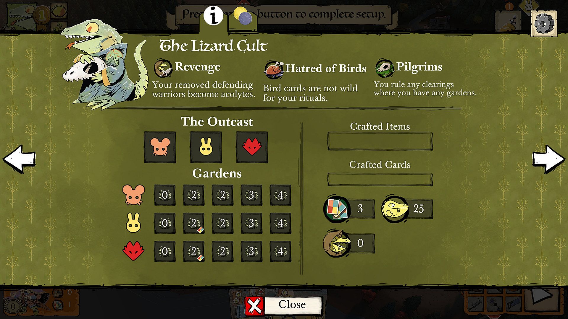 Spread the scaly gospel of the Lizard Cult! Tend your gardens to radicalize new acolytes, and reveal the true extent of your proselytizing power!New Vagabond Variants!
