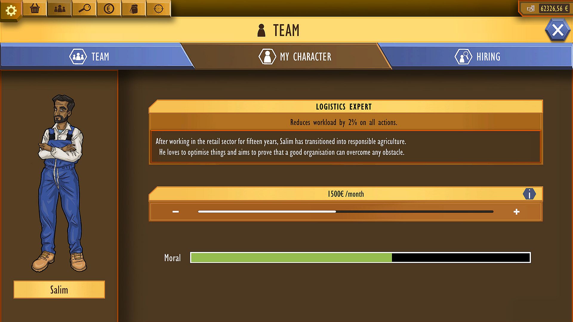 • Salim: Logistics expert: Reduces workloads by 2% on all actions.