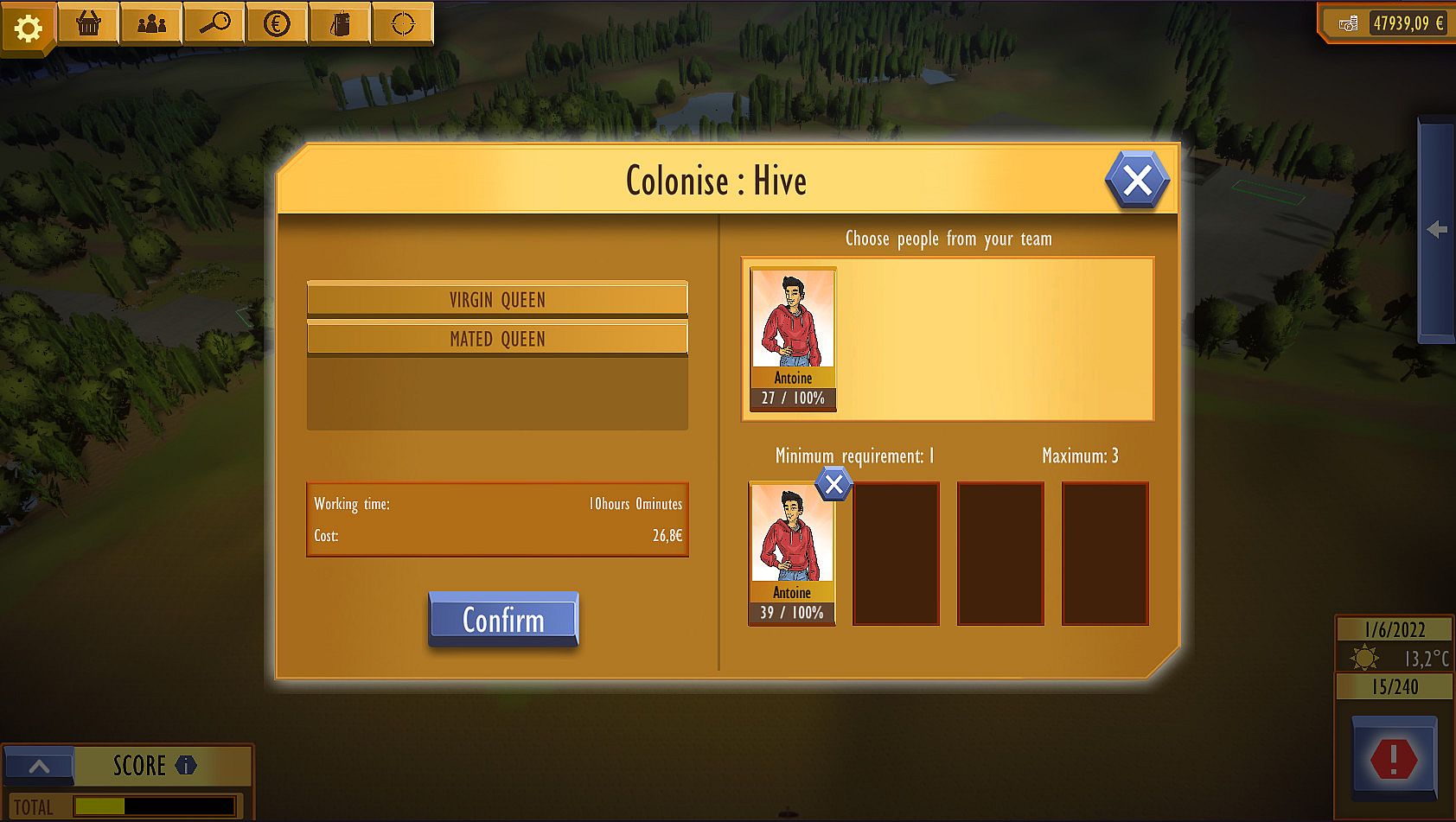 - Colonization: Lay a queen in the hive for a colony to develop (possible action from March to September)