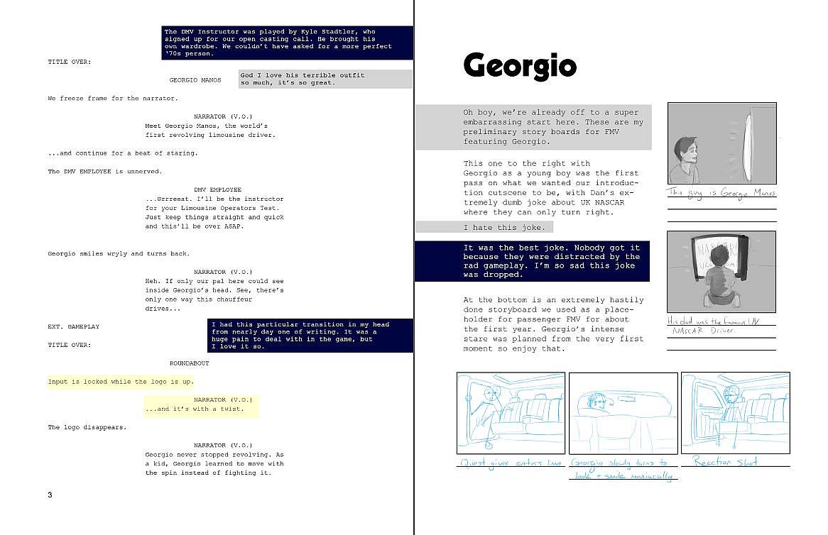 • Screenplay/Art Book compendium - The full 87 page FMV screenplay, annotated with concept art, notes, and other great behind the scenes commentary on the development of Roundabout.