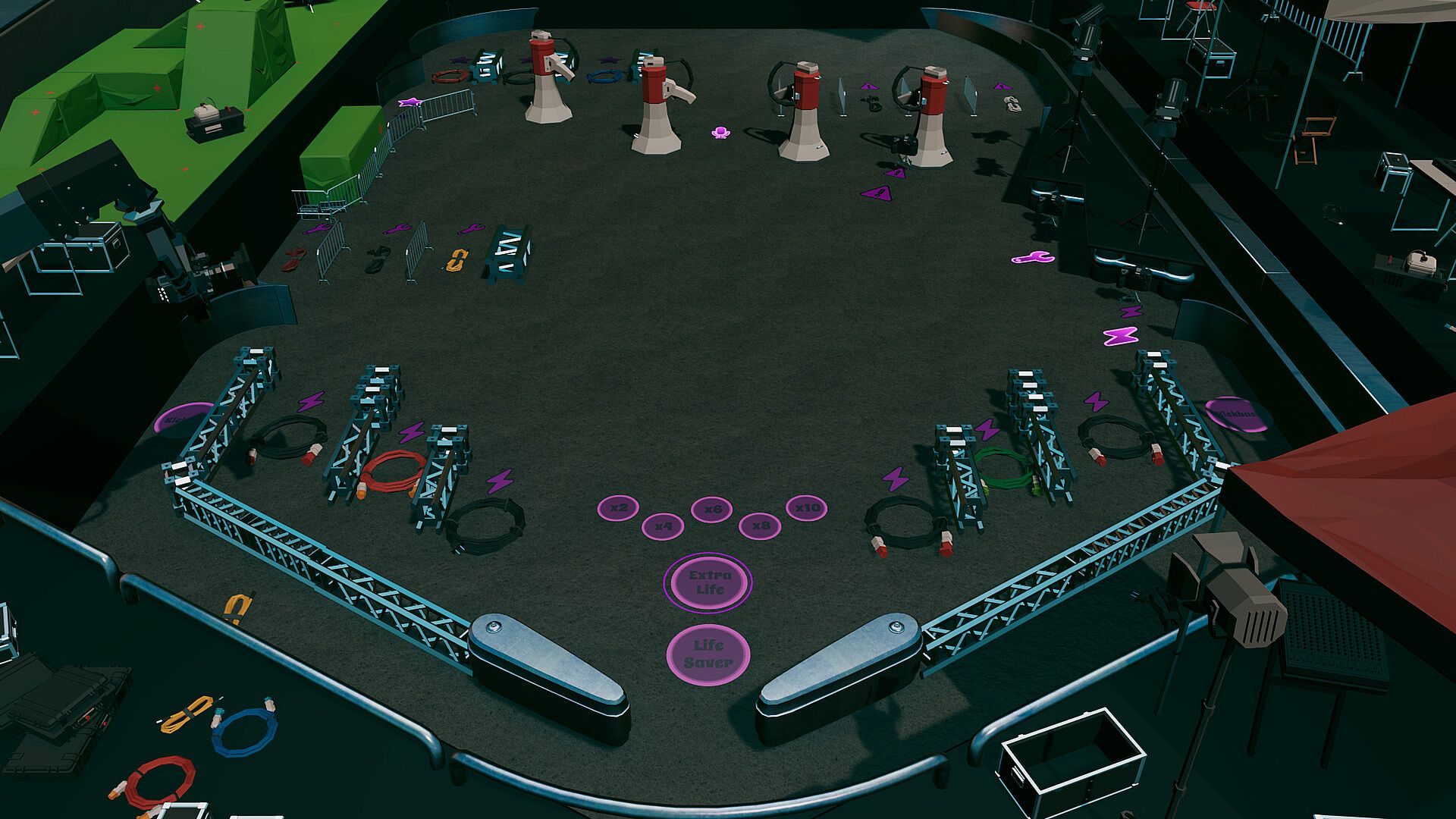 - 3 Flippers, 3 Bumpers, 5 Drop Targets, 3 Stationary Targets, 14 Rollovers.