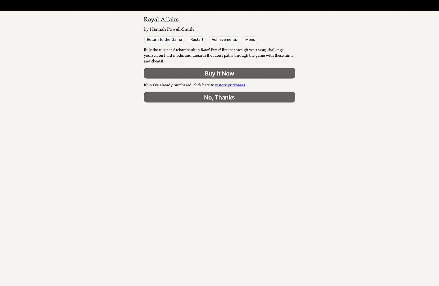 Before you start looking for a cheap Royal Affairs — Royal Favor CD Key, take a moment to check the essentials. Developed by Choice of Games. Published by Choice of Games. PC released date: 30 Mar 2023. Genres: Indie, RPG. Categories: Family Sharing, Single-player, Downloadable Content, Steam Cloud.