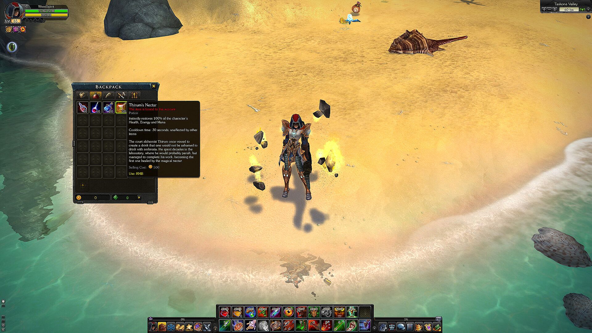 Instantly restores 100% of health, energy and mana. Cooldown: 30 seconds, unaffected by other items.