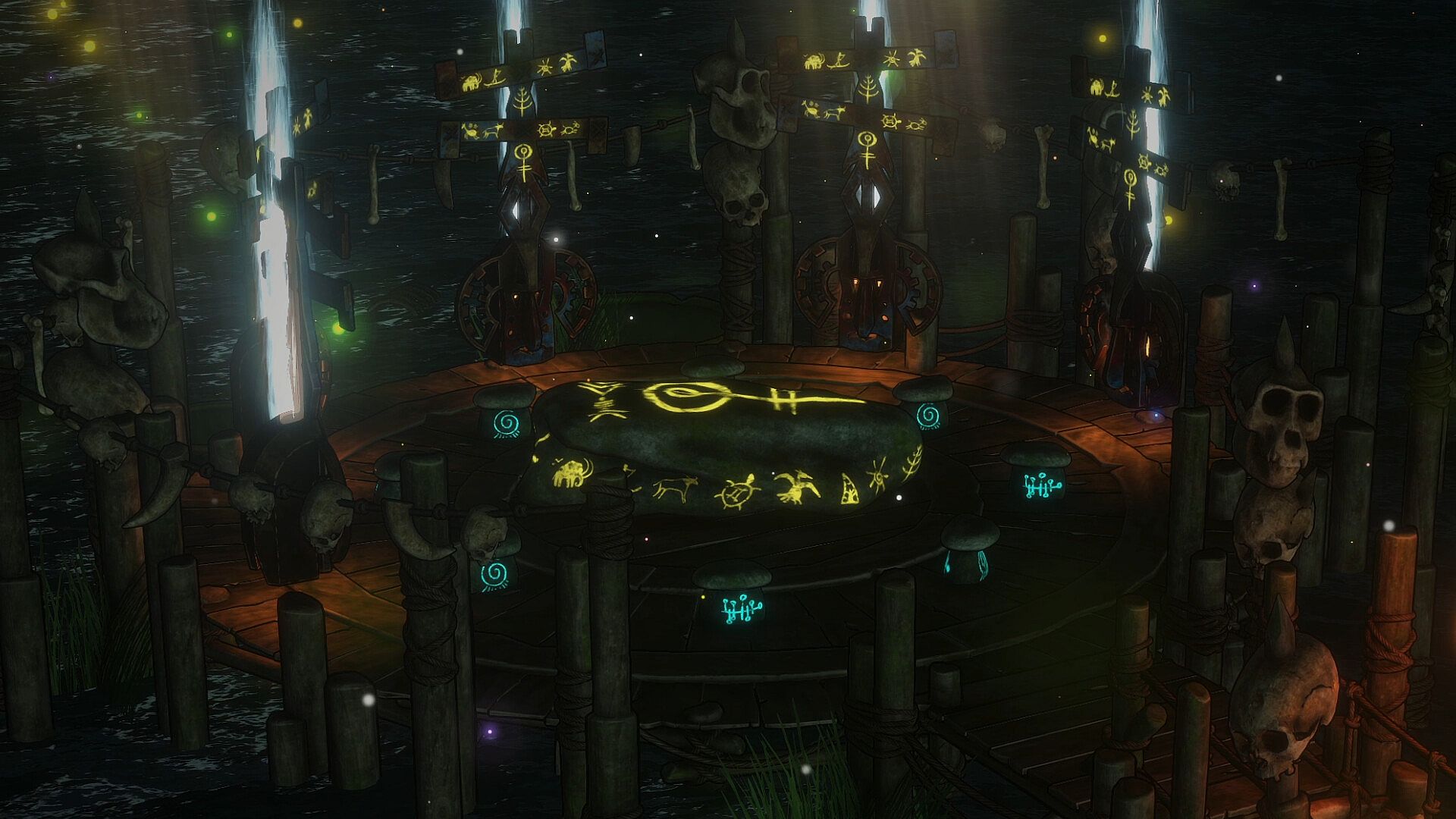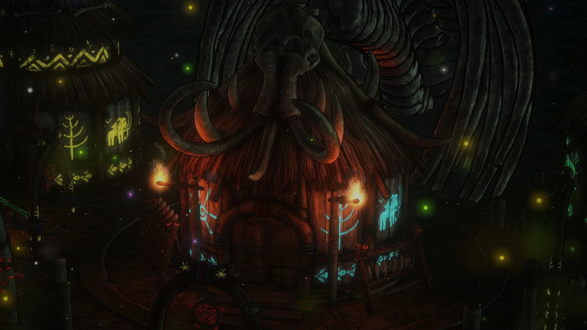 This DLC is a 3D asset pack that represents a mystical tribal settlement built on water. It includes numerous items that combine natural materials with tribal motifs, such as circular huts with thatched roofs, wooden pillars, ritual decorations made of skulls and bones, arches made of the bones of giant creatures, boats used for fishing and water transportation, and magical lighting effects. With its blend of simplicity and mysticism, this pack supports the creation of various scenes, including tribal villages, the ruins of forgotten civilizations, and mythical worlds.