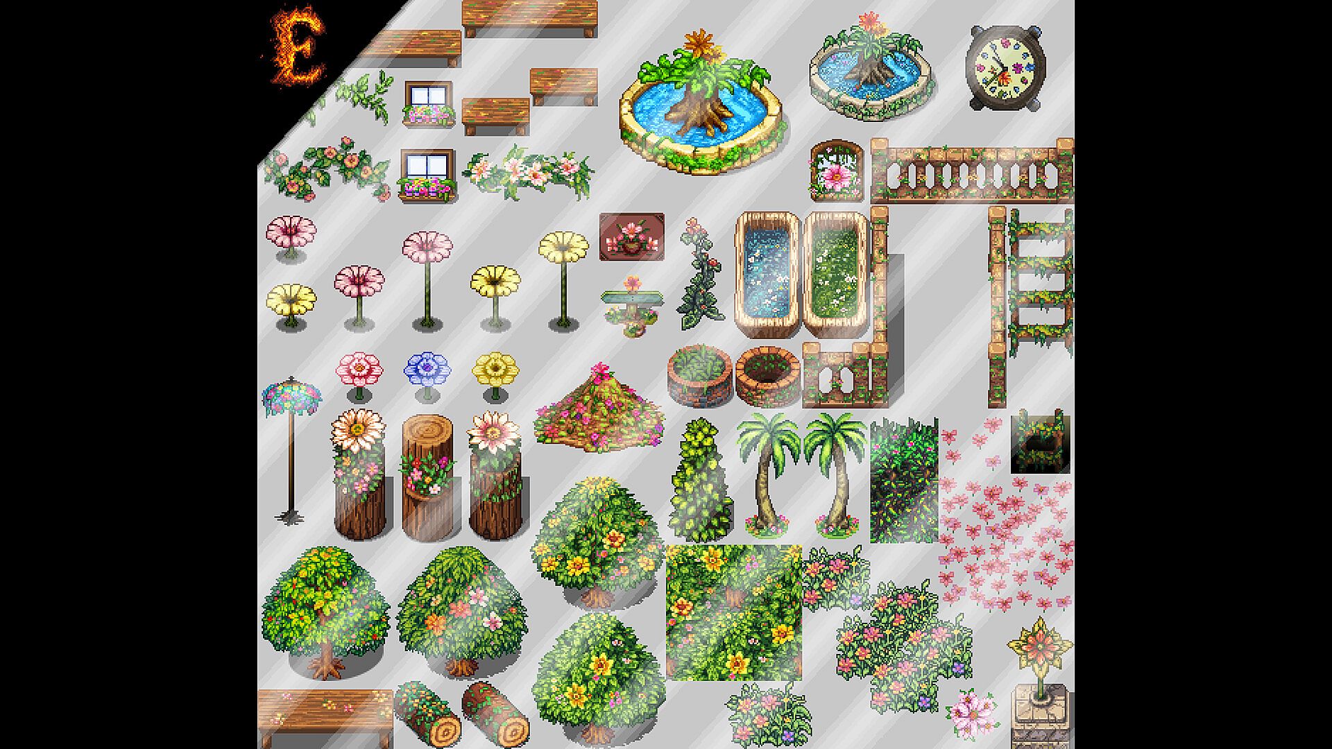 A collection of tileset assets and decorations with a floral twist!