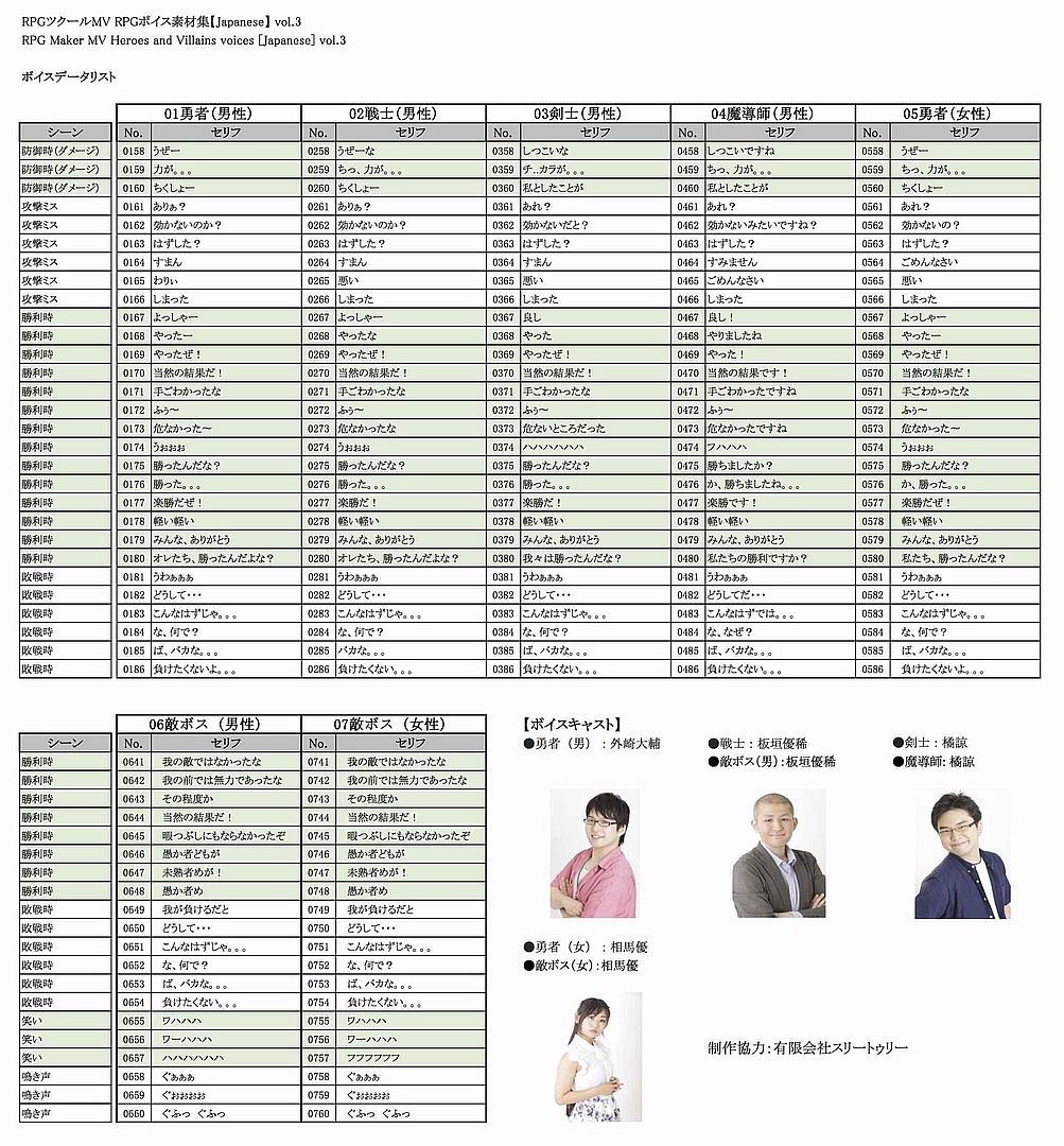 Interested in RPG Maker MV - Heroes and Villains voices 【Japanese】vol.3? We're tracking prices from trusted stores. Add RPG Maker MV - Heroes and Villains voices 【Japanese】vol.3 to your wishlist and we'll notify you when deals become available.