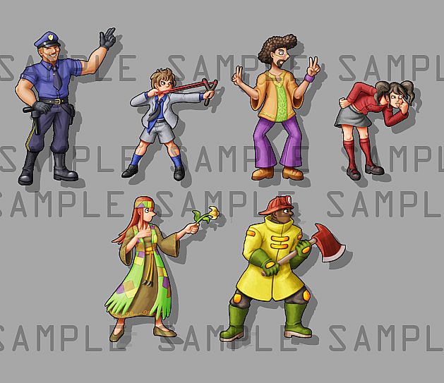 Created by Thalzon, this imaginative battler pack features both staples such as cell-phone addicted youth and unique elements such as knife-yielding greaser pigeon. With 61 battlers to choose from, you're guaranteed to find just the right enemy for your contemporary game.
