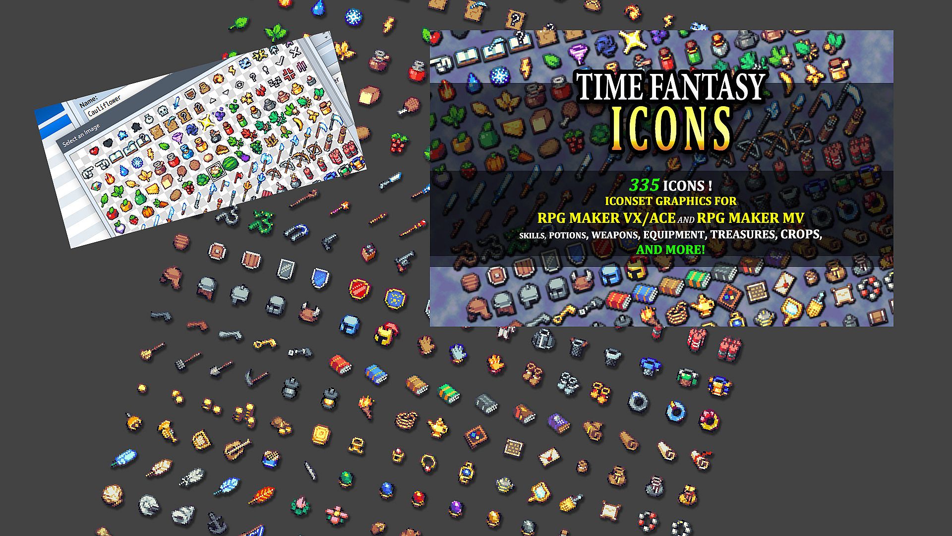 A graphics expansion with fresh tilesets and icons in the crisp pixels of the Time Fantasy style! Expand your world with all the essentials for farms and forts-- loot, weapons, crops, and more! Complete your collection with over 300 icons!