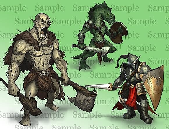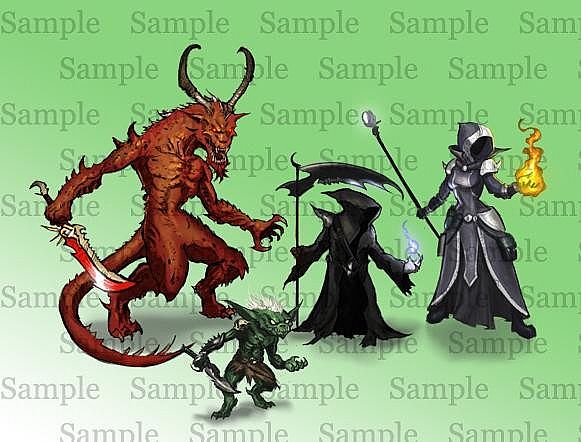 Asssassin, Cultist, Dark Reaper, Drow, Frogman, Ghost, Giant Spider, Gnoll, Goblin, Guard, Hero-Mage, Hero-Warrior, Hero-Ranger, Hobgoblin, Ice Golem, Imp, Lizard Man, Magma Golem, Ogre, Ruffian, Scout, Skeletal Warrior, Slime, Stone Golem, Swashbuckler, Troll, Wererat, Zombie