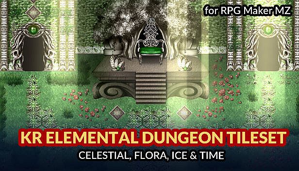Bring the power of the elements to your RPG Maker game with KR Elemental Dungeon Tiles, featuring celestial, flora, ice and time elements!