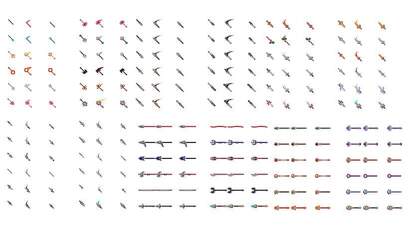 * Sheet format by weapon type included (576 x 384 the default file size, a file with 12 weapons, 12 files in total)