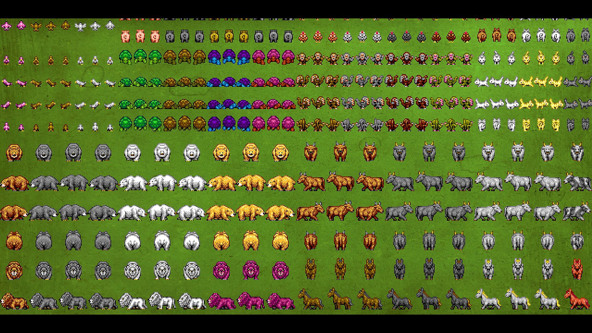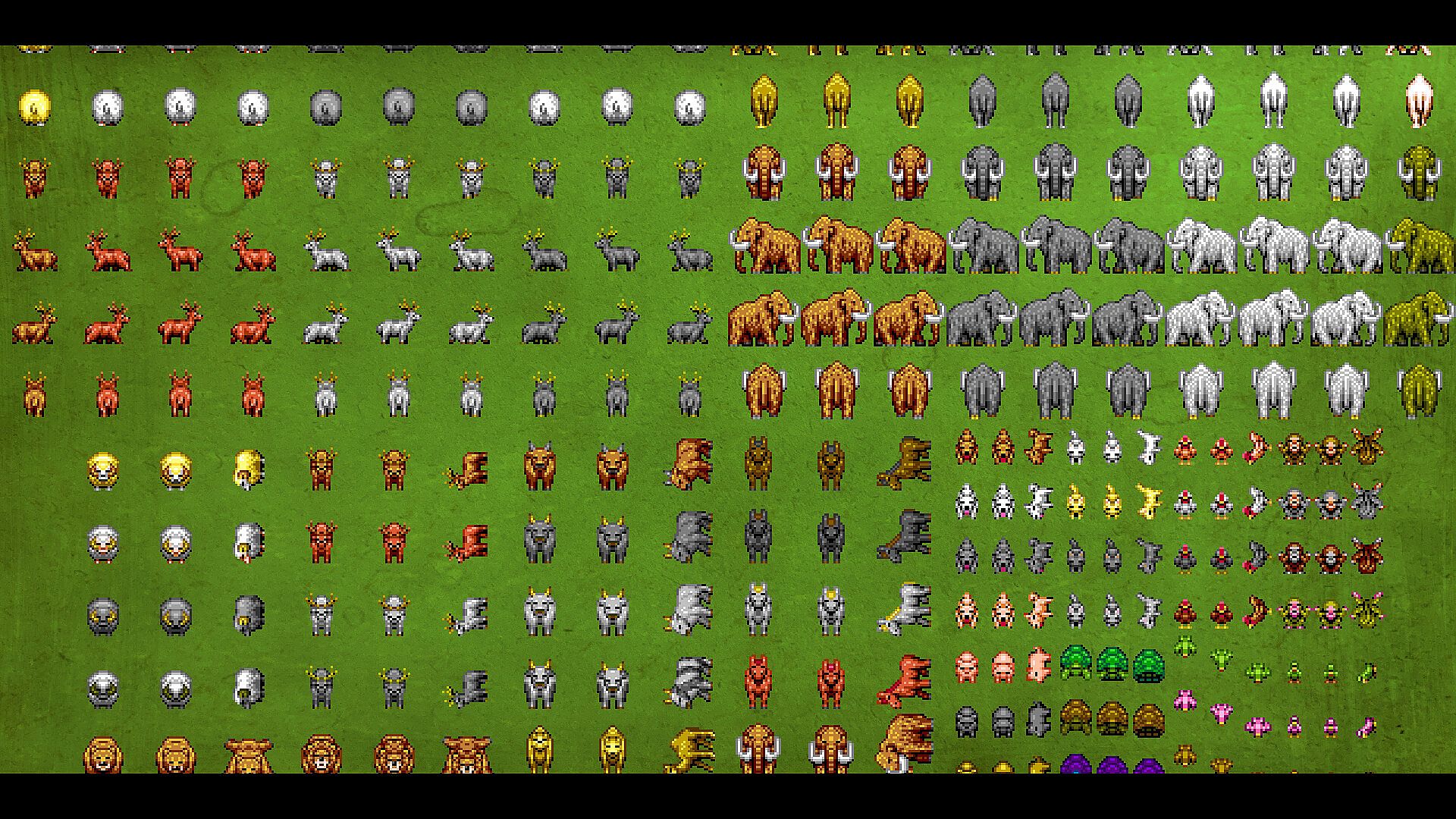 This asset pack was created under the limitations of the classic “9-bit color” (512 colors) used in old 16-bit home consoles, with color palettes restricted to 15 colors per palette.