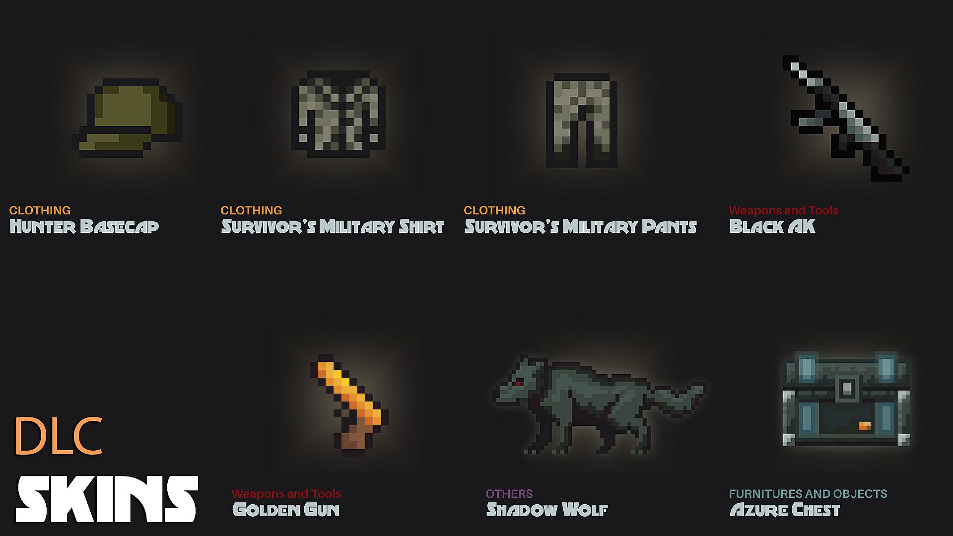 Back Wall Tiles: Transform your base with a wide variety of new back wall tiles available exclusively in the Survivor's Pack DLC. Whether you want to create a cozy retreat or a fortress of solitude, these tiles allow for endless customization and personalization, giving your base a unique flair. Build and decorate your stronghold like never before, ensuring every inch reflects your style and survival prowess.