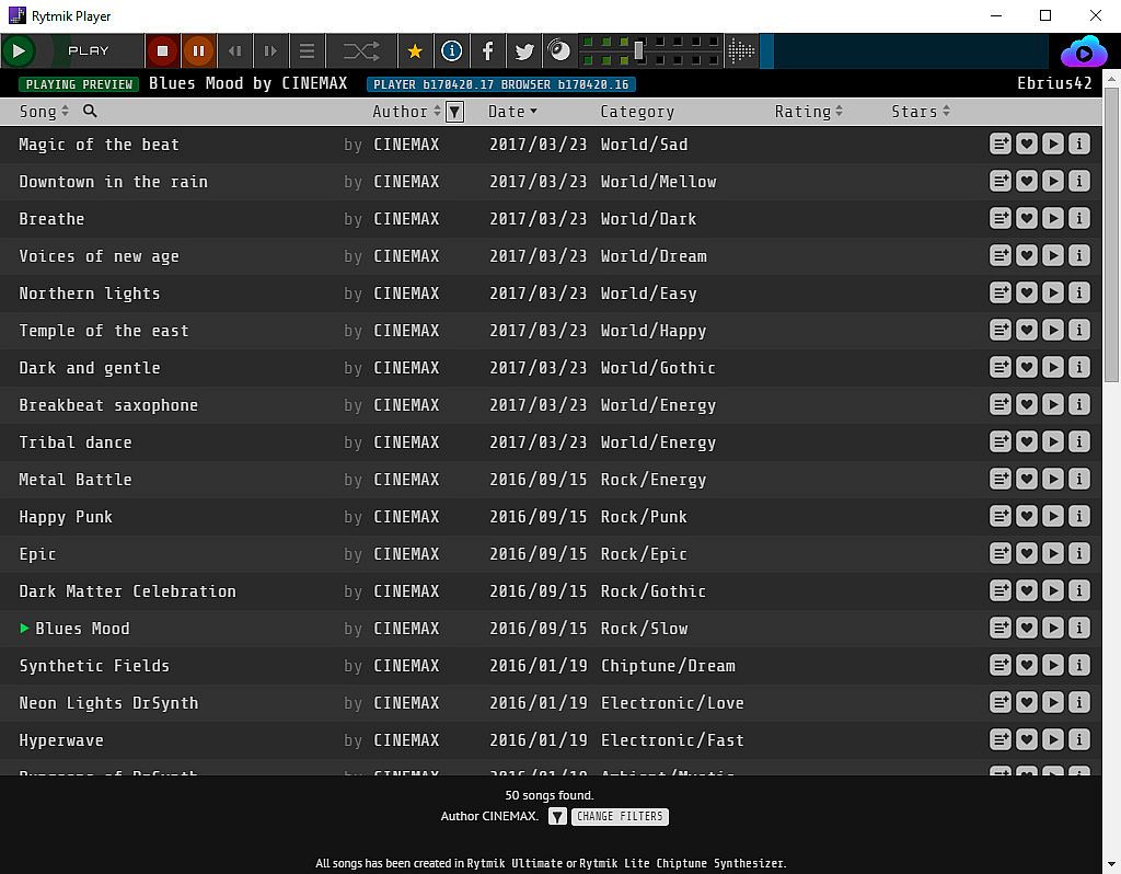 - Filter and Search Songs by Name, Author, Date, Category and Rating