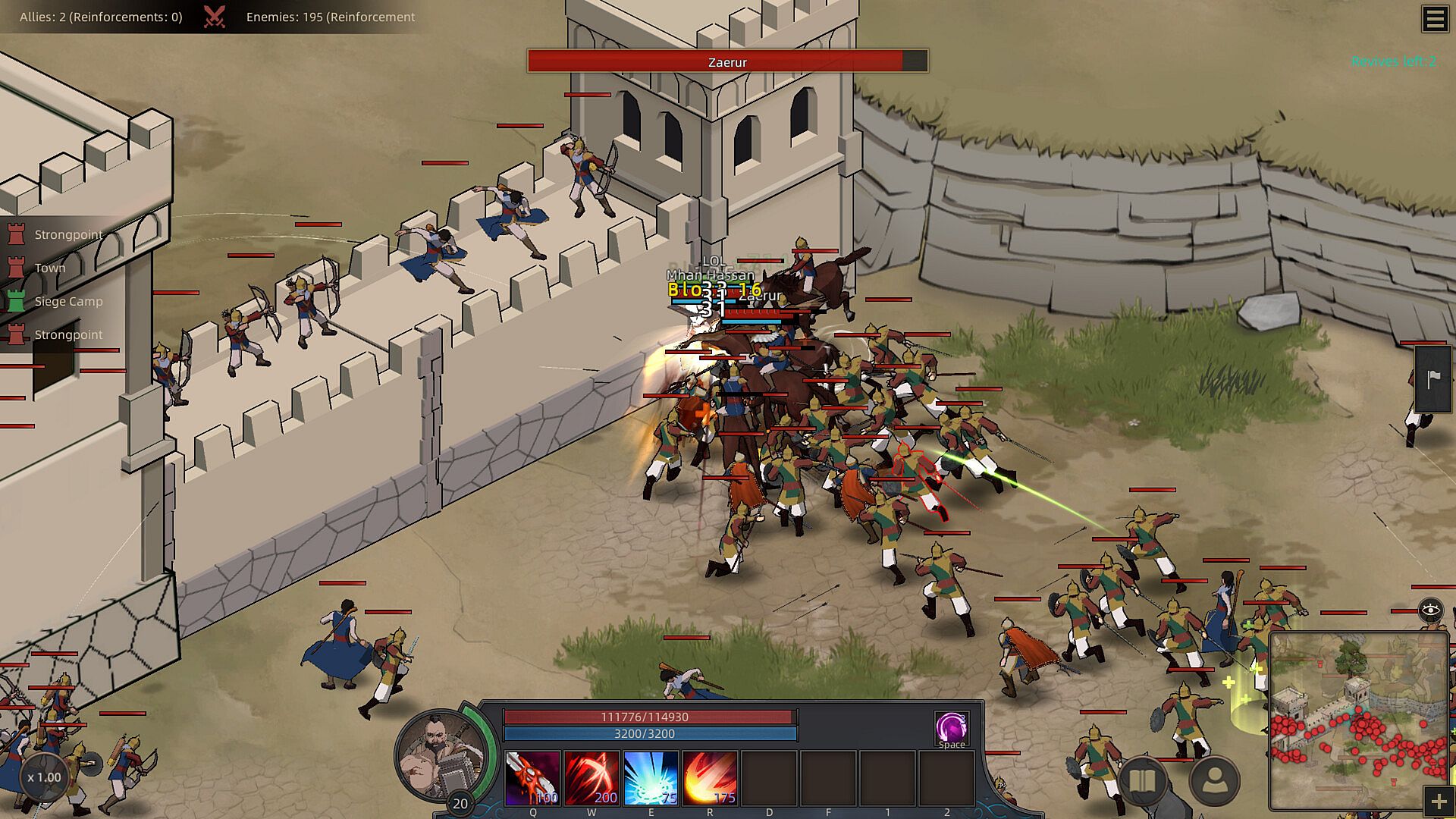 Siege defense enhancement; on the basis of the original siege warfare, the last line of defense is replaced with a wall that separates both sides, with the gate needing to be breached to capture the defender's stronghold. Wall system; At the start of the battle, ranged archer units will automatically take positions on the walls for defense.