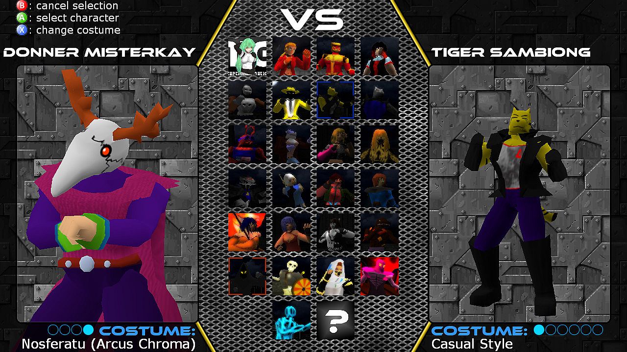 Grab and dodge in this action-packed crossover. Donner takes on the demonic Nosferatu look from Arcus Chroma, letting you embrace a dark, furious style. This PC costume requires unlocking Donner Misterkay first through arcade mode cleared with all 16 main characters, the initial unlock prompt, or specific cheat codes. Action fans who master character unlocks and quick maneuvers will get the most from it. Switch to the shadowy theme to amp up your gameplay edge. Perfect for players chasing full roster access and crossover flair.