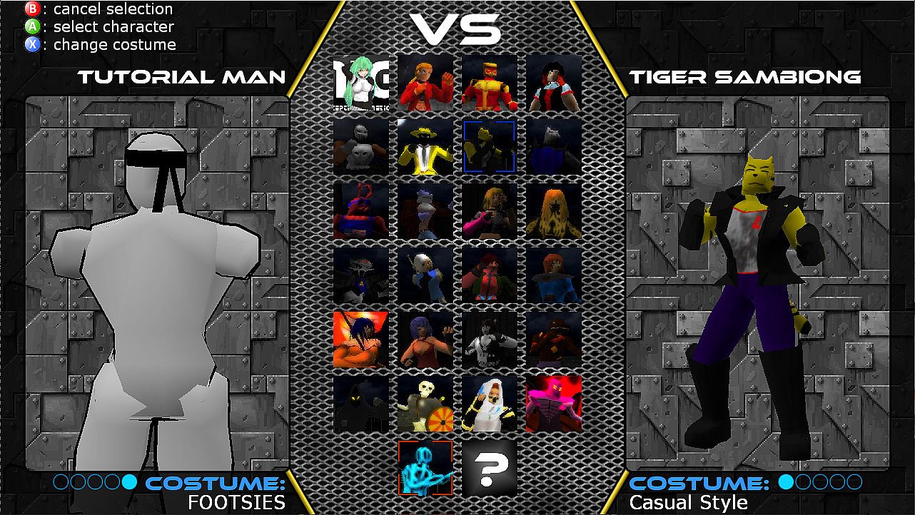 Practice hit confirms against the master in this official FOOTSIES collaboration costume for Tutorial Man. He steps in as the FOOTSIES fighter, sharpening your neutral game through targeted drills. Unlock him first by completing Tutorial mode, selecting yes at the initial unlock all characters prompt, or entering cheat codes from discussion threads. This action-focused costume suits players honing core fighting skills like confirms and neutral control. It delivers precise practice tools for dedicated fighters ready to refine their fundamentals.