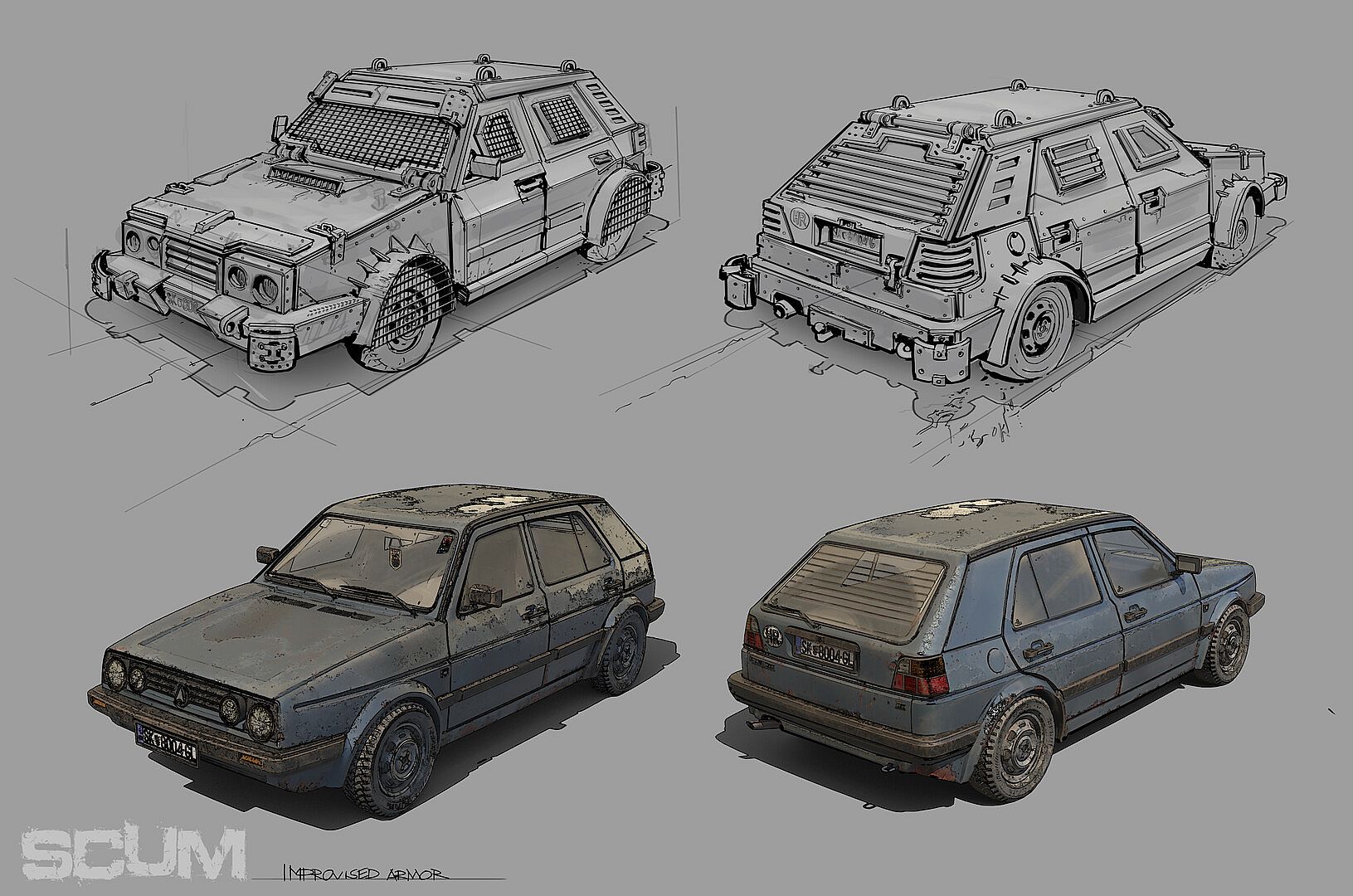 An assortment of various concept art from SCUM’s rich development history featuring different elements of the game.