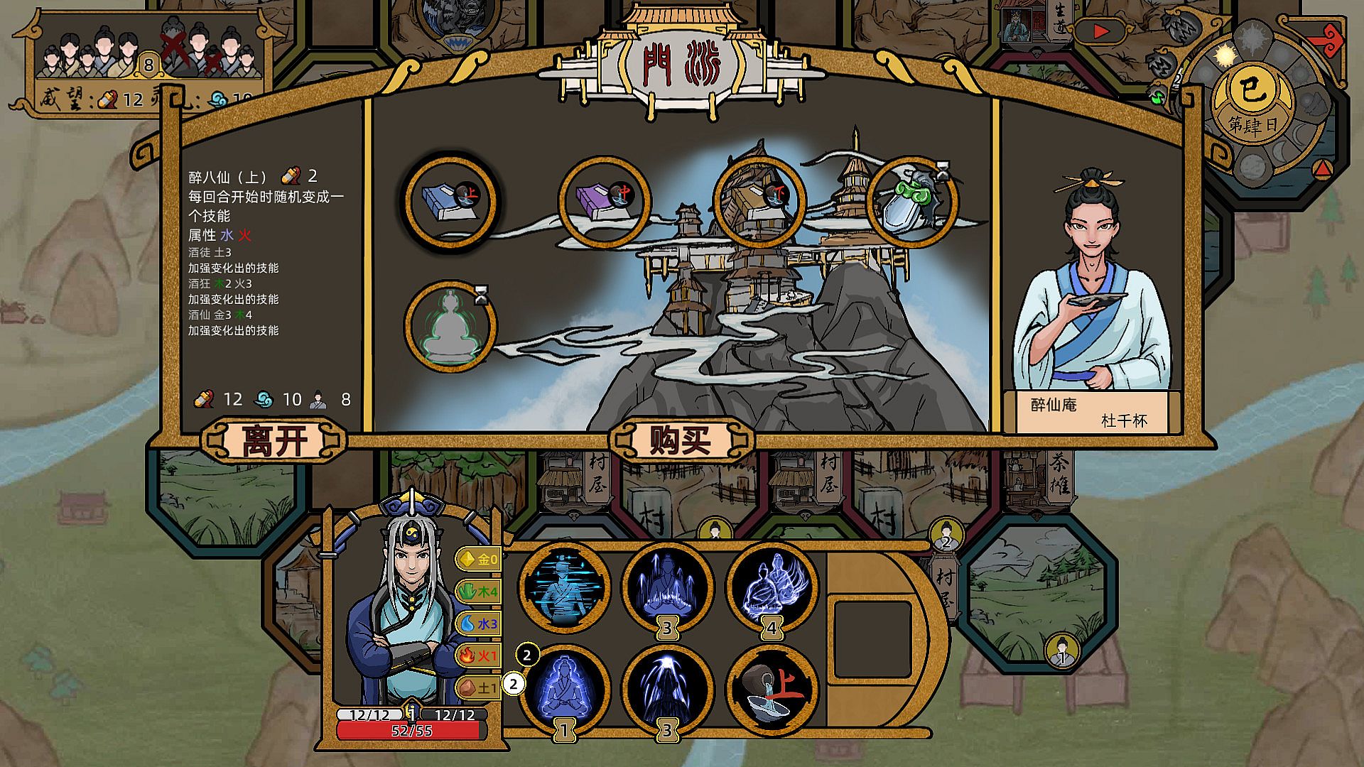 醉还真:造成物理攻击,叠加1层醉意,回复2点阴阳气