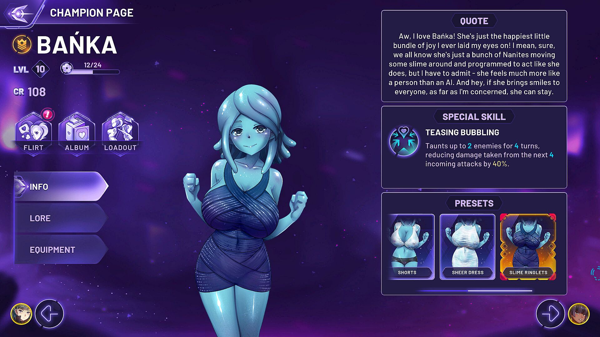 You will also receive an epic equipment set, allowing you to use her in missions immediately, along with a legendary look for Bańka (or its equivalent in nanites if you already have it).
