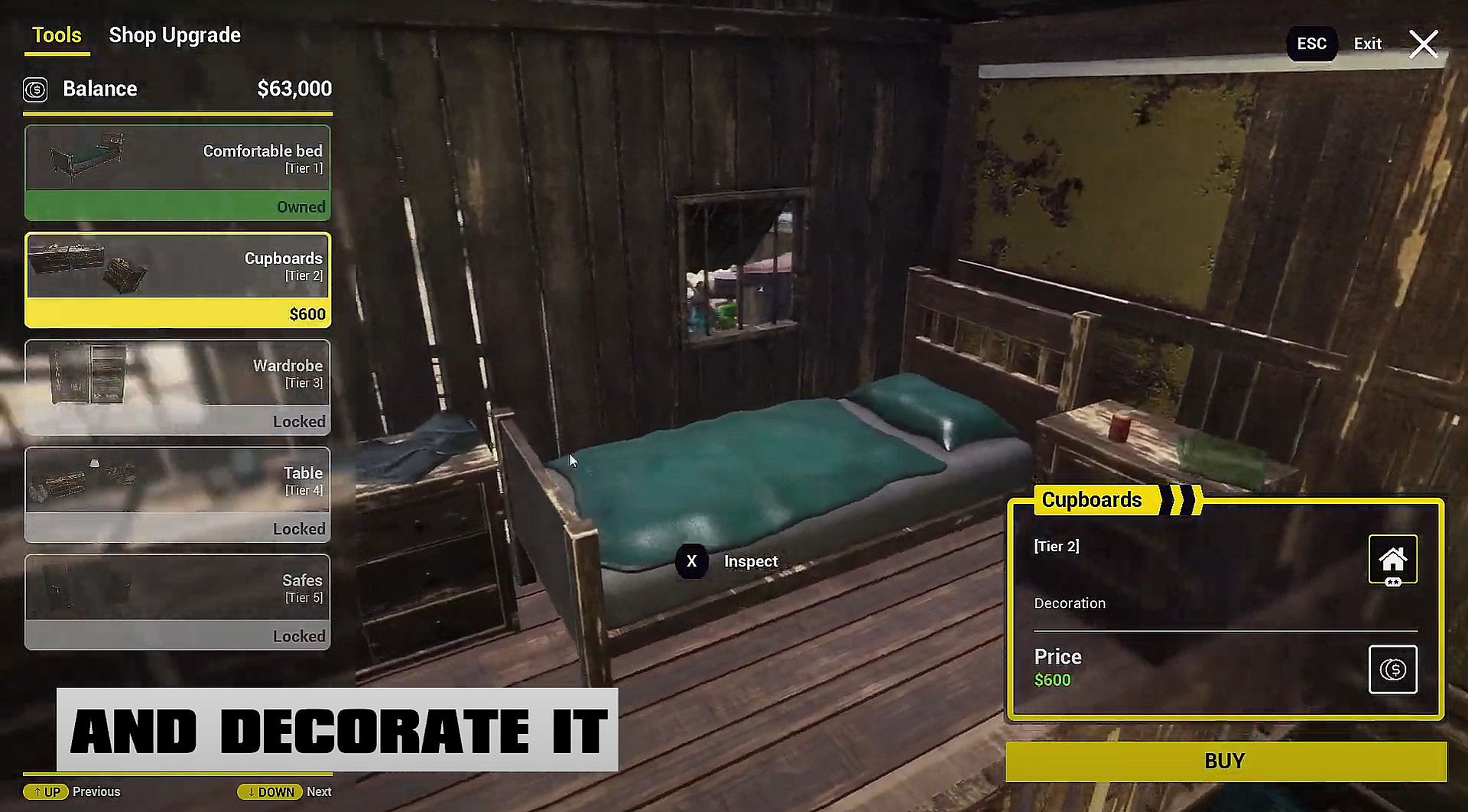 - House upgrades including decorations and many player improvements to buy inside.