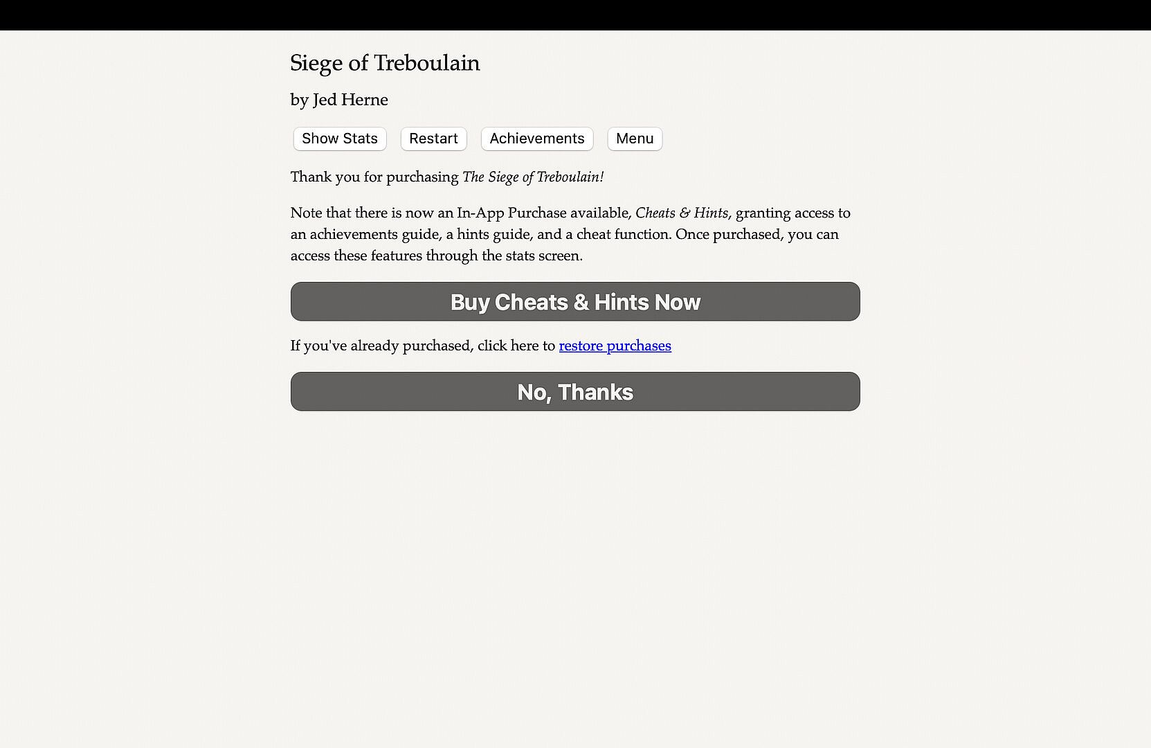 Before you start looking for a cheap Siege of Treboulain — Cheats & Hints CD Key, take a moment to check the essentials. Developed by Choice of Games. Published by Choice of Games. PC released date: 13 Oct 2022. Genres: Action, Indie, RPG, Casual, Adventure. Categories: Family Sharing, Single-player, Downloadable Content, Steam Achievements, Steam Cloud.