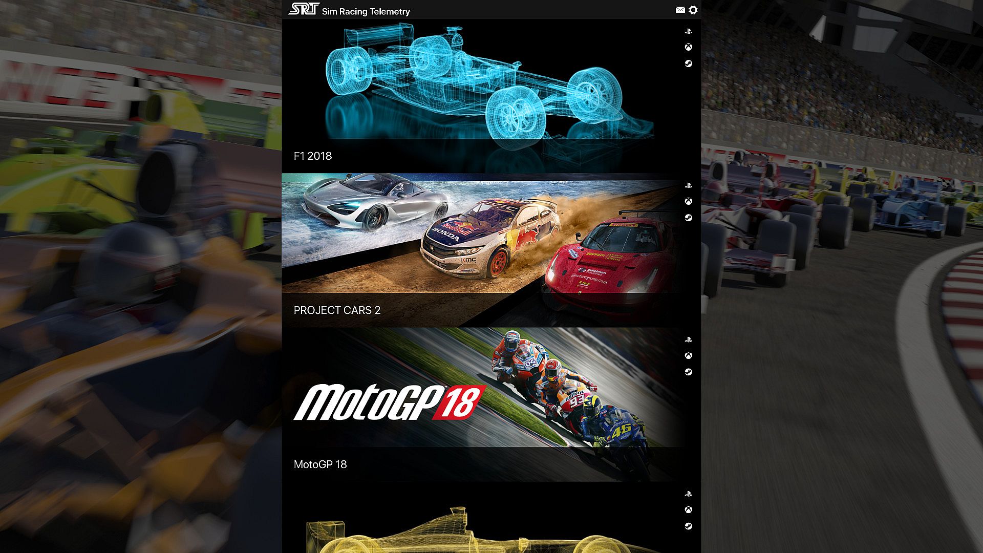 To record data, both the computer running SRT and the PC/console running the game must be connected to the same network. The game and SRT can run on the same computer. SRT records only complete timed laps. Follow the integrated instructions (Help button in the Recording view) to configure the game and properly record telemetry data.