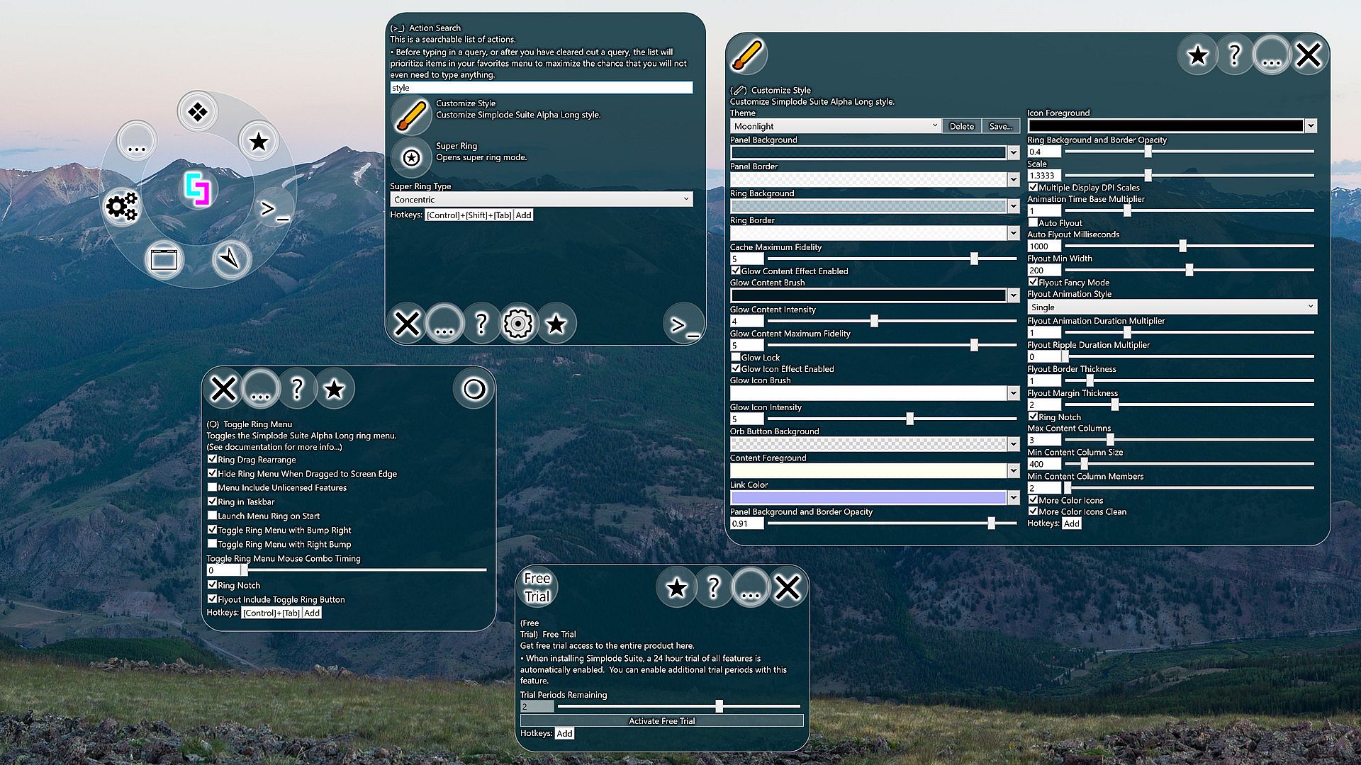 Uncheck this option to prevent the Welcome screen from automatically appearing when Simplode Suite launches. - Launch Menu Ring on Start (Default: True)