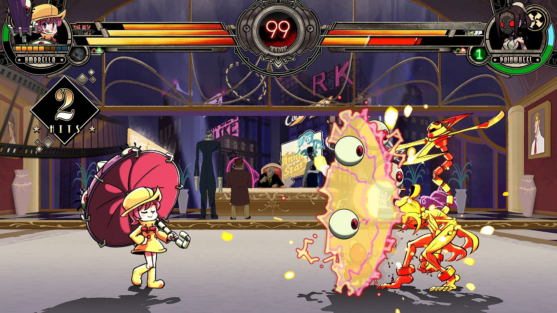 "Skullgirls: Umbrella" brings the feisty Umbrella and her companion Hungern into the Skullgirls roster as the saltiest sibling from the Canopy Kingdom. Players jump into her all-new Story Mode to uncover the harsh truths of the Renoir Royal Family. A fresh Boardwalk stage adds seaside encounters to matches on PC. Master Umbrella's moveset through dedicated Character Tutorials in this action indie fighter. Customize with 29 palettes suited to her royal flair. Fighting game fans perfect their skills against this bold new addition.