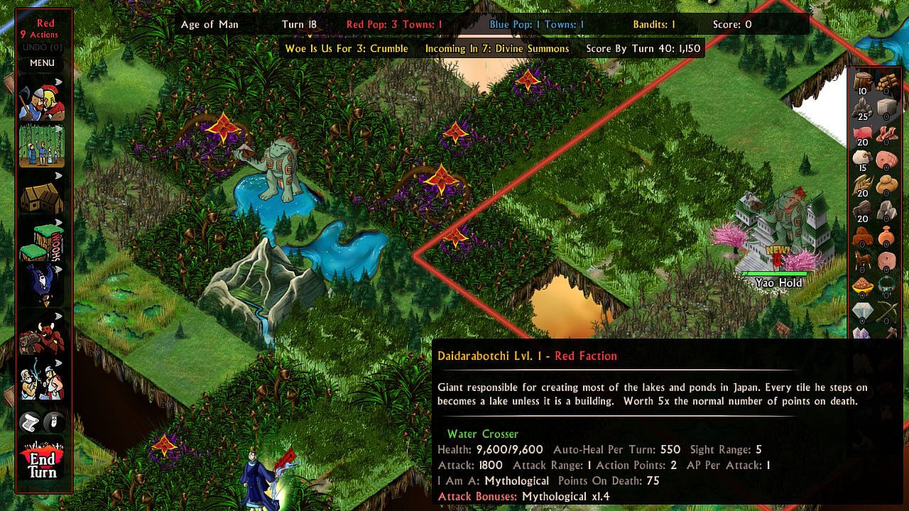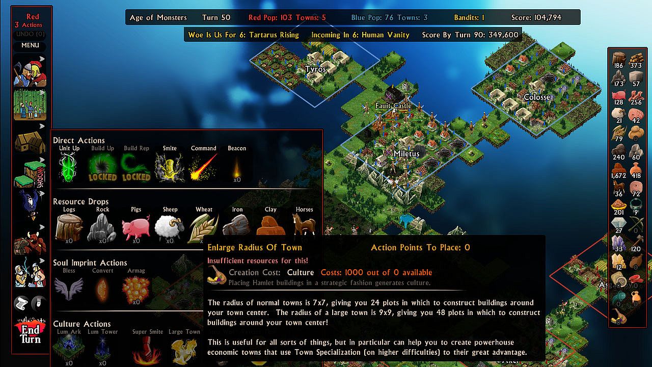 • Powerful new Culture abilities: Enlarge Radius of Town, Reverse Time, Stop Woe, and Super Smite.