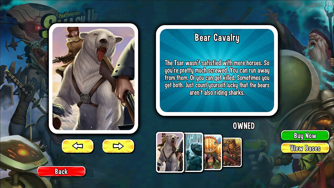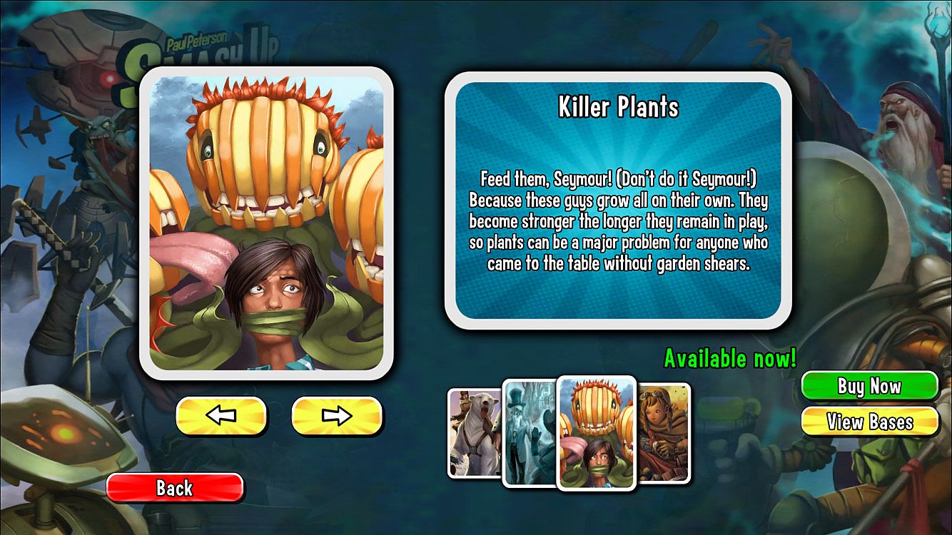 Thought you had enough awesome Pirates, Ninjas and Zombies? Well get a load of this bucko: Killer Plants, Steampunks, Ghosts and Bear Cavalry are here to smash into your game! This expansion features 4 all-new factions that you can mix and match to defeat your opponents.