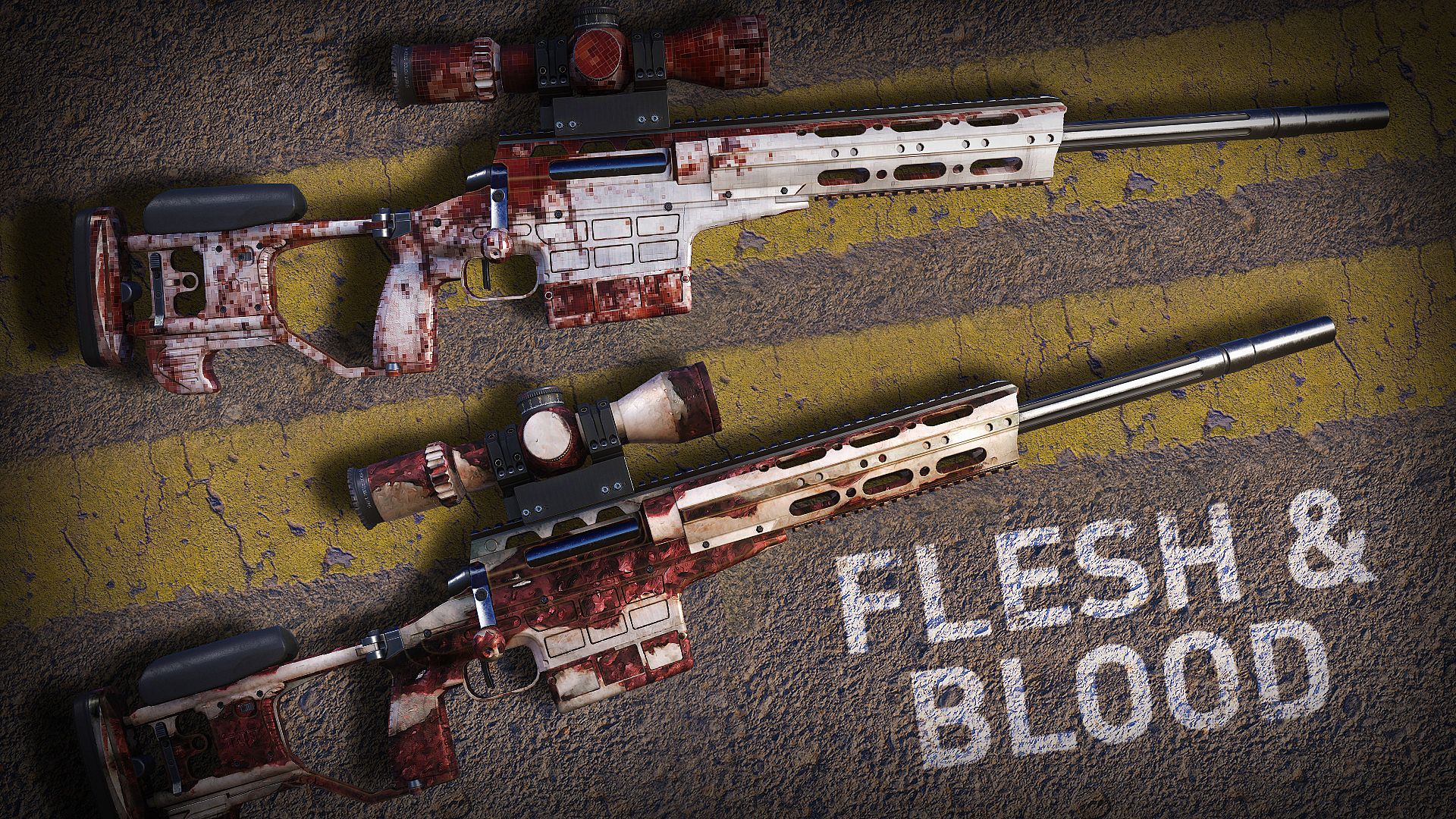 Watch your enemies quake in fear with the Flesh & Blood DLC pack, containing two weapon skins decorated in the remains of previous foes. Usable on all in-game guns, these visceral designs will strike fear in even the boldest of adversaries.
