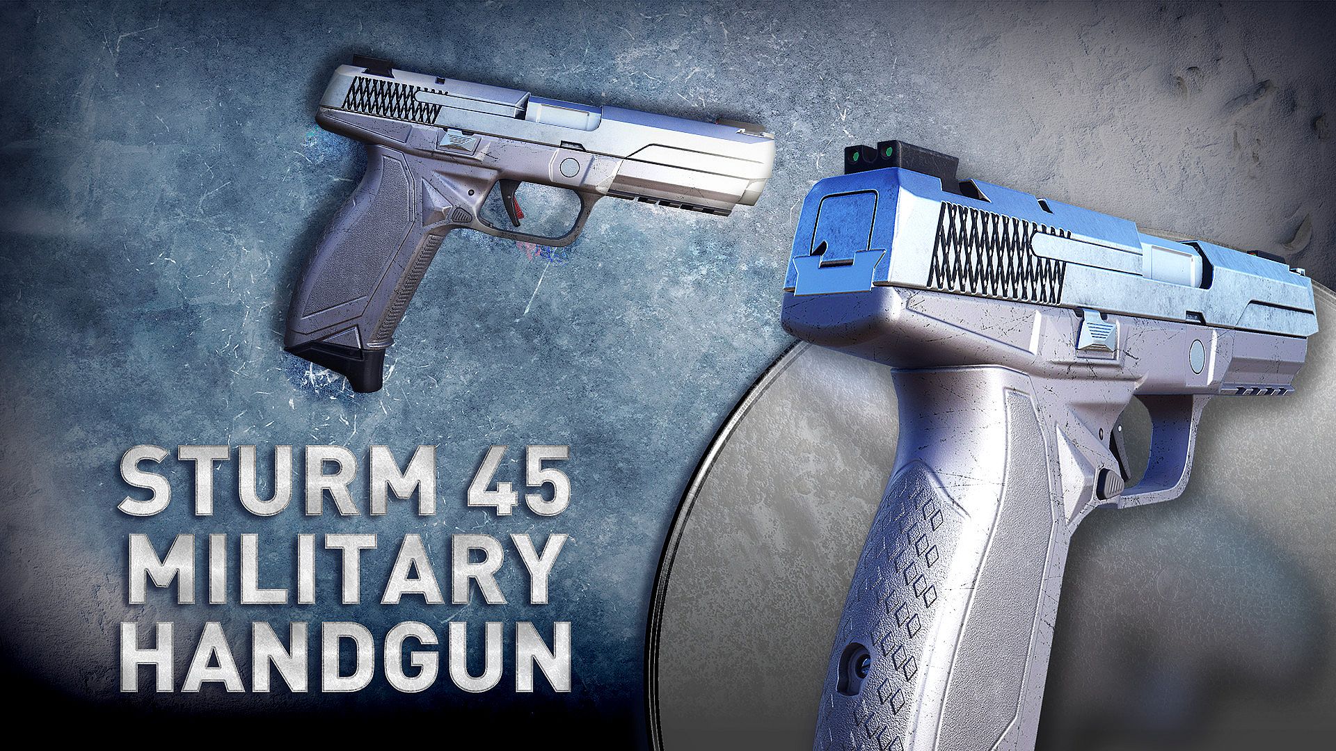 - Pistolet Sturm Military 45 – półautomatyczny pistolet z polimerową ramą i mechanizmem napinającym, które zapewniają mu niski odrzut i szybką synchronizację celownika, dzięki czemu idealnie sprawdza się w walce na krótki dystans. Nie wychodź bez niego z domu.