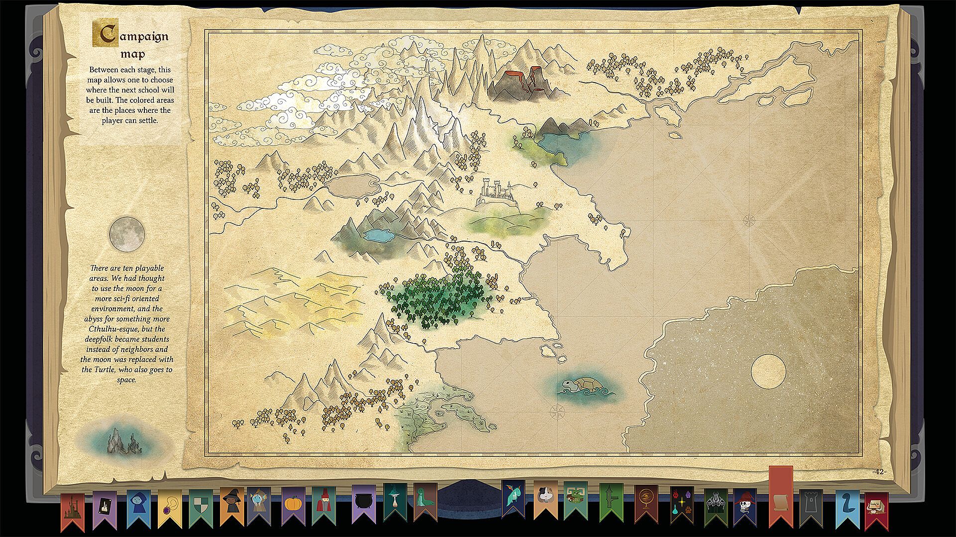 Magic-school principals gain a detailed look inside Spellcaster University with this 60-page digital artbook. Loving illustrations and notes fill its pages, revealing key visuals from the strategy simulation. A digital poster highlights various future concepts for the school. Fans of strategy simulations appreciate these extras that deepen their connection to the magic-school theme. The artbook and poster deliver focused content on design elements. Dedicated principals collect such items to enhance their simulation experience.