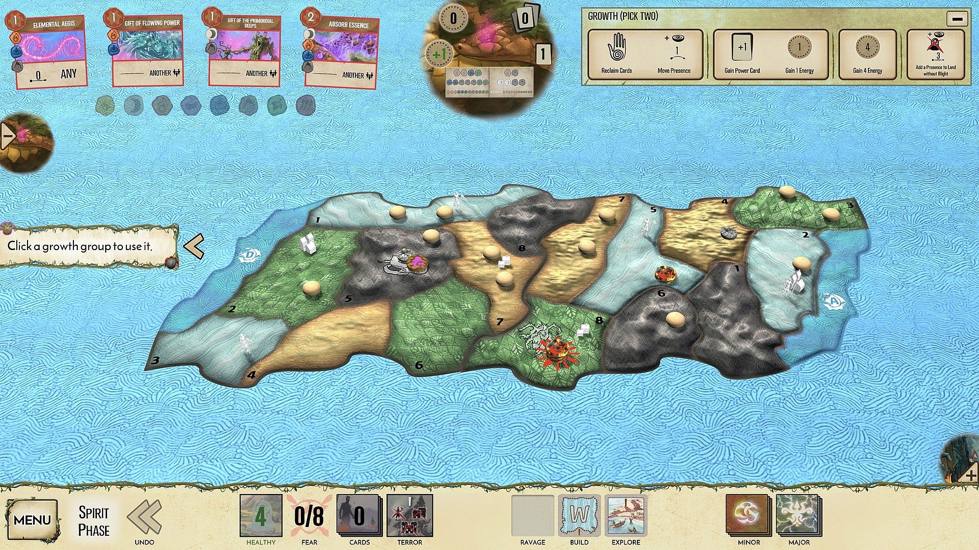 The Serpent Slumbering Beneath the Island is a high-complexity spirit. If Ocean's big limitation is "coastal" and Wildfire's is "blight", Serpent's is "waking up": it's a very slow spirit, limited in its development, but with the prospect of great power if it wakes up fully.