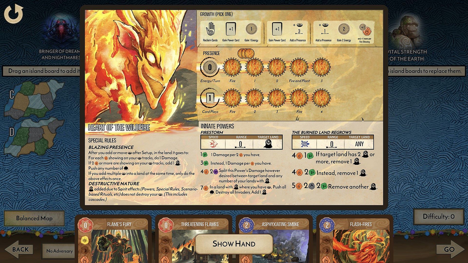 Heart of the Wildfire embodies a fiery spirit drawn to human sparks and hearths, yet driven to shield the Dahan from Invaders while reveling in unleashed blazes. It overlooks fire's harm to the land, trusting in renewal amid the ashes. This strategy indie expansion delivers its Innate Power cards like Flame's Fury and Flash Fires for dynamic gameplay depth. Serpent Slumbering Beneath the Island stirs slowly from deep slumber, its massive power tied to the island's roots and roused by Invader blight. As a high-complexity spirit, it faces limits in development until fully awake, unlocking vast potential. Players wielding Elemental Aegis and Gift of Primordial Deeps tackle intricate challenges in this PC expansion. Seasoned strategy fans thrive on its deliberate pacing and escalating might.