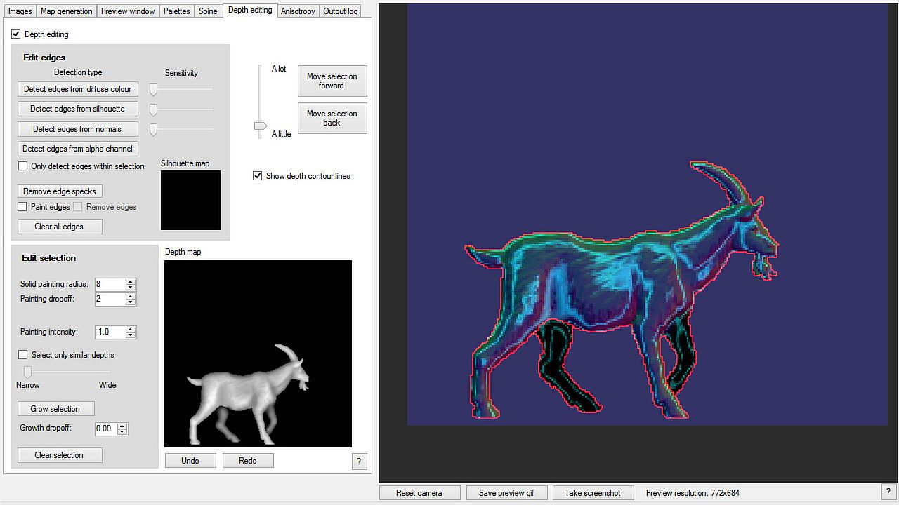 • A set of tools to edit and fine tune generated depth maps from within Sprite Lamp.