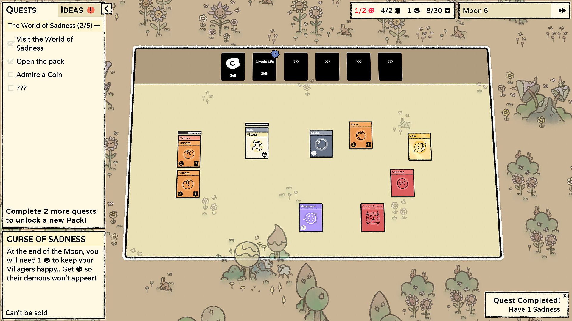 In this cursed world, villagers need happiness every moon. Create enough happiness by letting them read books, building taverns and more. Be careful, as certain actions will also create sadness! Can you help save the villagers from longing for happiness all the time?