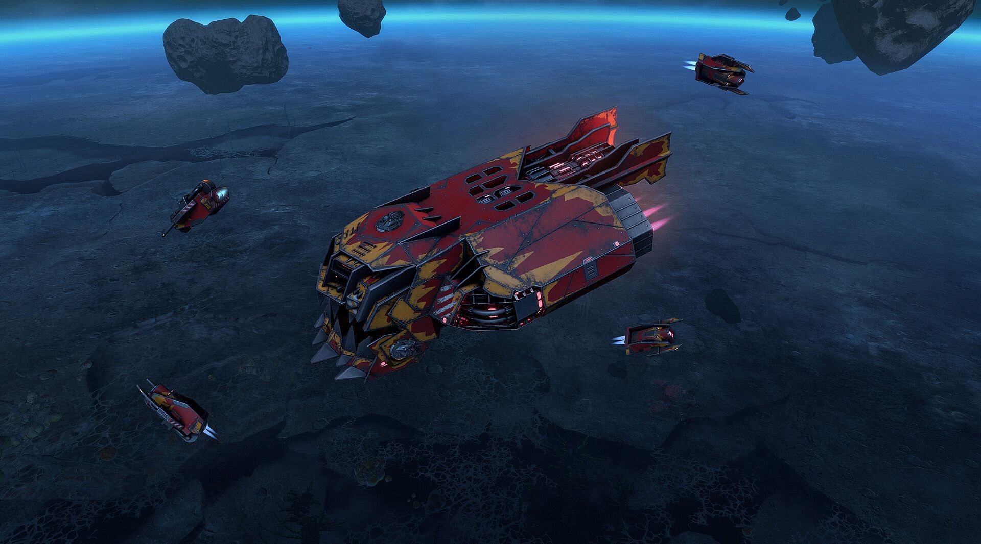 In the past, it was the Imperial mining ship “Digger”. It’s not known for certain who was involved in the modernization and transformation of the frigate. The survivors of the Doomed Flotilla were rumoured to have had a hand in this by trying to escape from the infected sectors. The ship’s old hull was badly damaged, and so it became the carcass on which the new plating from various scrap metals was attached. Somebody thought it would be a good idea to use some of the metal to create a fearsome look for the frigate.