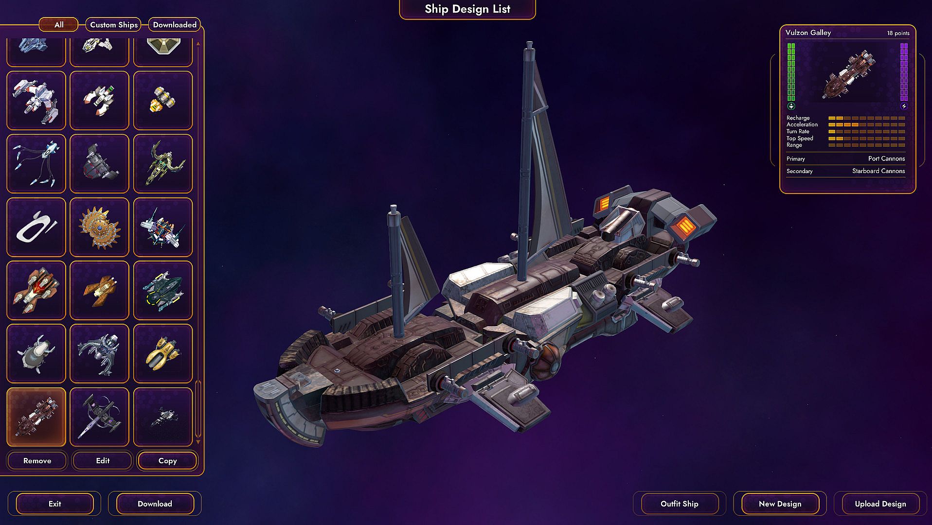 - Vulzon Galley - Slow, heavy ship that shoots dangerous lines of missiles.