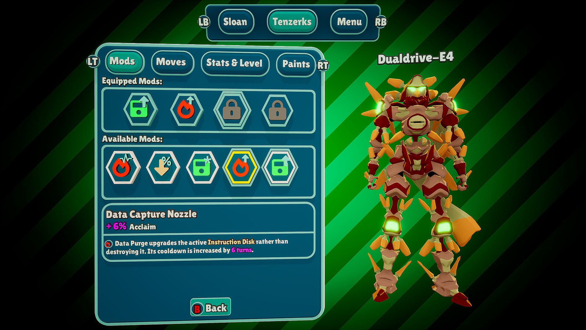This pack also includes 5 mods for the Dualdrive-E4. All content will be available on all of your saves after they complete the first tutorial battle in Steel Century Groove: Midnight.