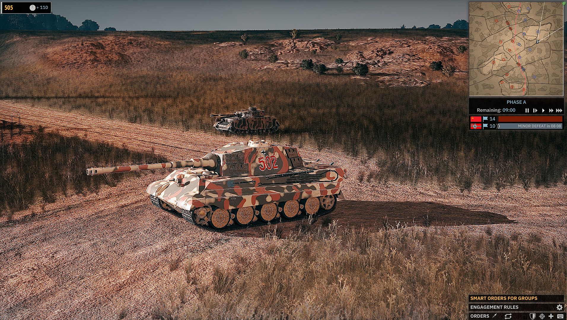 16. Panzerdivision was a spent shell without Panthers and only limited infantry, anti-tank, and AA forces compared to a “regular” armored division. Yet, for that counter-offensive the 16. Panzer was supported by not one but two Tiger battalions, one of them freshly reequipped with brand-new Königstiger (H). Hoping to take the Soviets by surprise, the Germans attacked after only a brief preliminary artillery bombardment. As such, the division won’t have any off-map artillery, but a good number of Nebelwerfer units instead. Like over Warsaw, the Luftwaffe made a special effort to provide air support, allowing the 16. Panzer to field numerous fighter and fighter-bomber units.