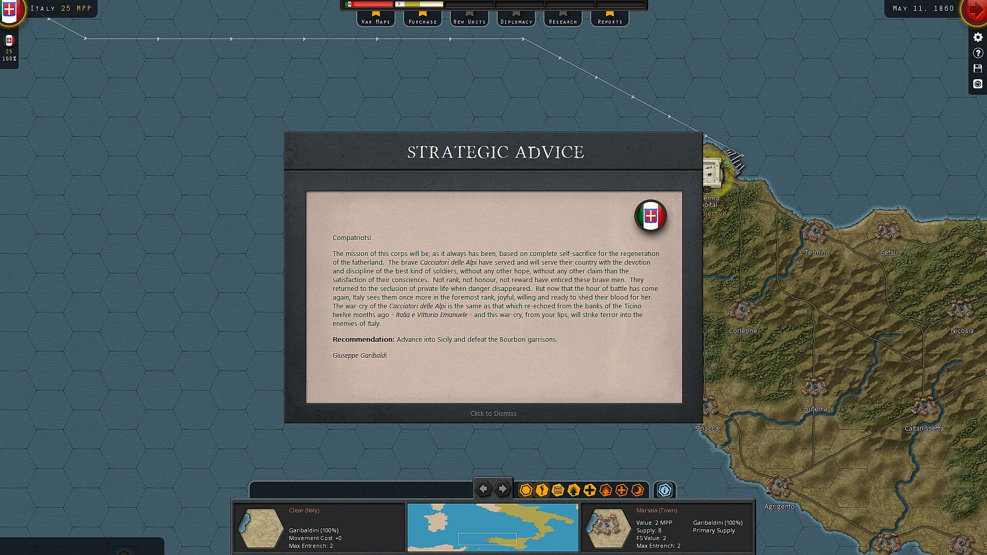 Giuseppe Garibaldi, hero of Rome, sets sail with a thousand volunteers to topple the Bourbon Kingdom of the Two Sicilies. France guards Rome, Austria eyes Venetia, and every move risks sparking a greater war. Can you unite Italy against impossible odds?